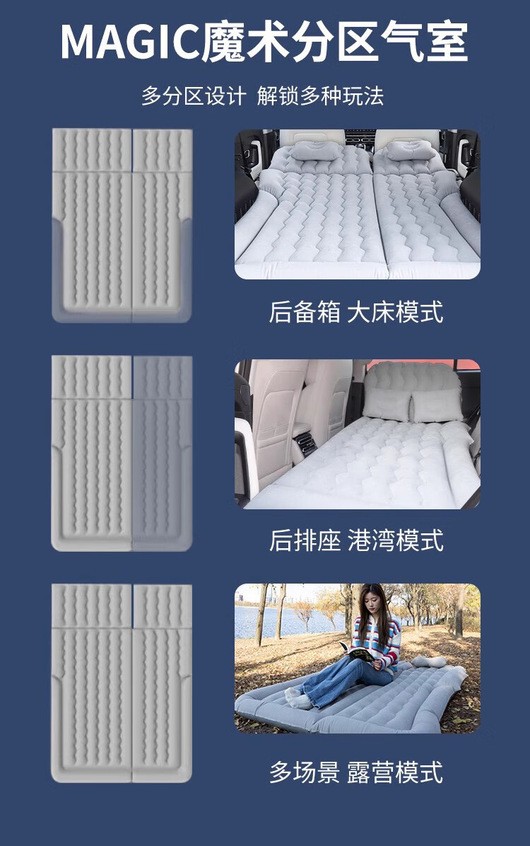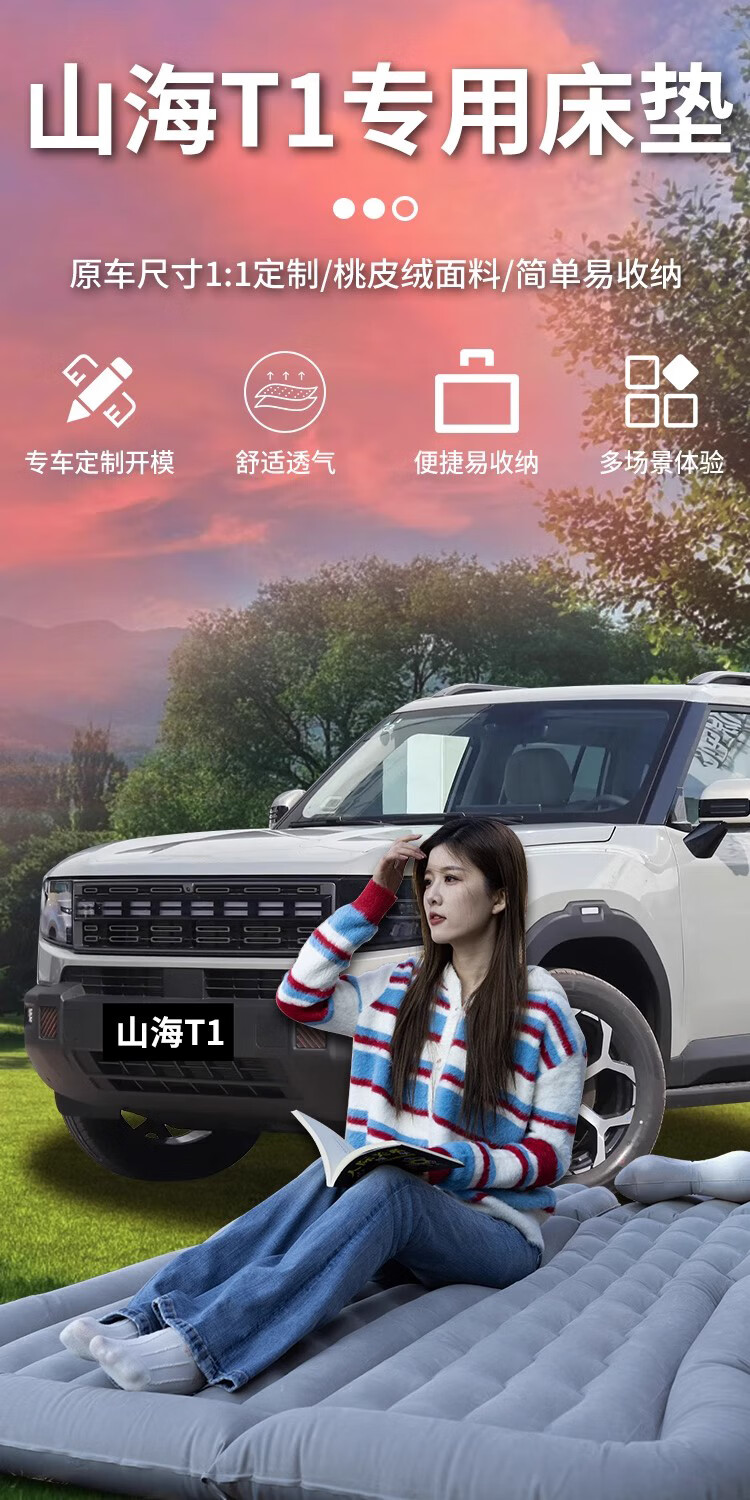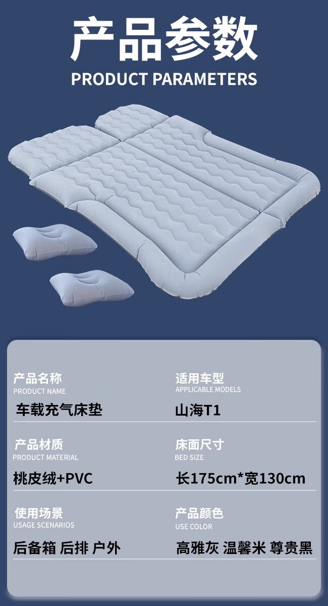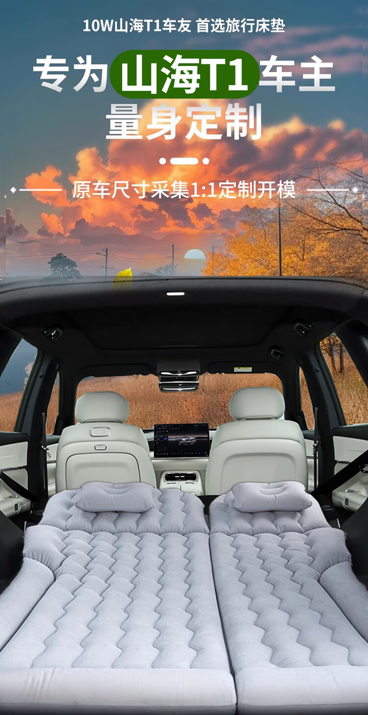 Jixiao Jietu Shanhai T1 Car Air Mattress Chery Special Air Bed Car Trunk Sleeping Pad Sleeping Artifact Dual-use Model Gray Trunk + Camping Official Original 25 Models Jietu Shanhai T1