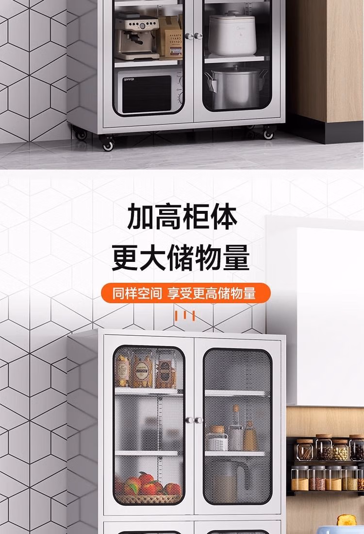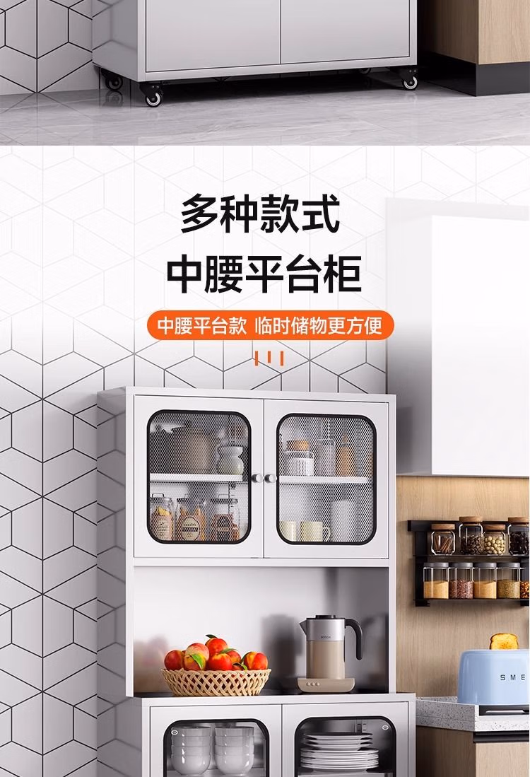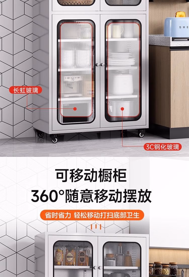 He Jiagong customized stainless steel sideboard kitchen storage cabinets home kitchen cupboards restaurant storage cabinets with multiple mesh doors 1.1 meters wide tempered glass door 201 thickened stainless steel