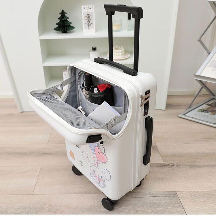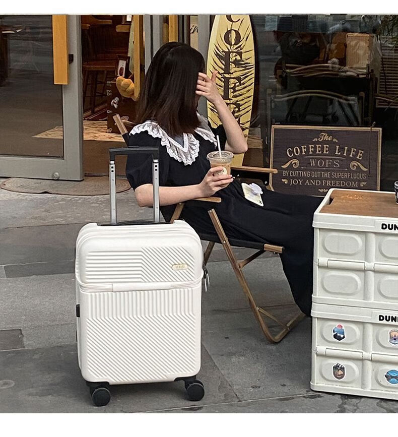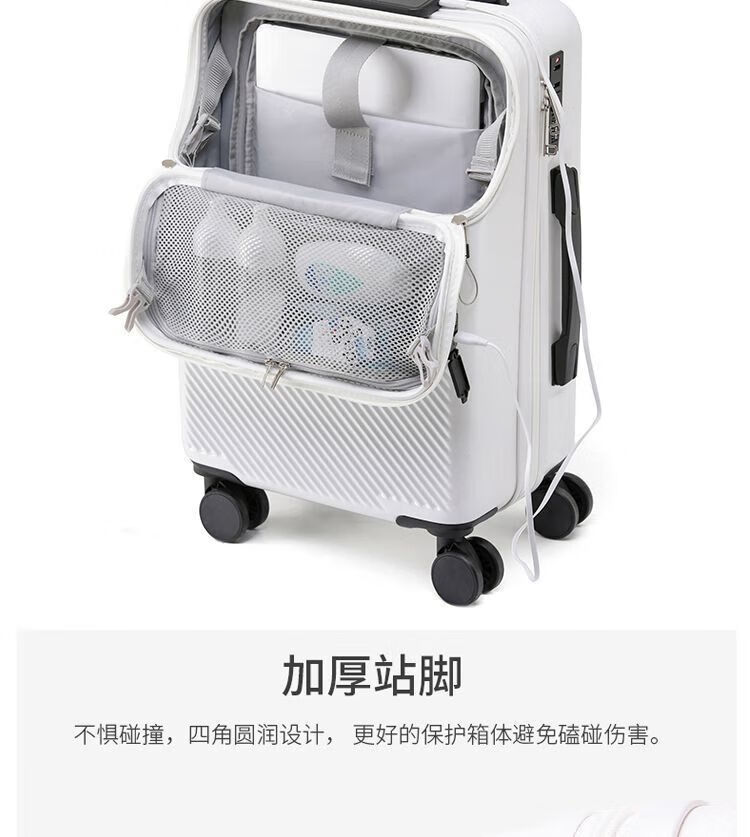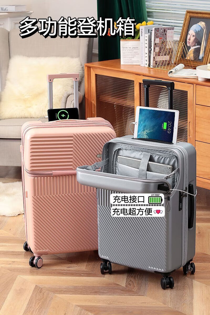 Ye Yu female student's front-mounted suitcase, good-looking computer can sit on, rechargeable password trolley leather suitcase for men, upgraded multi-functional thickened version - pink 20-inch collection attention sticker + expedited delivery