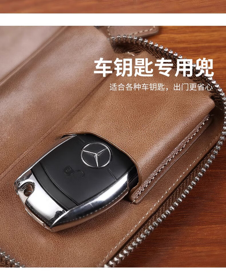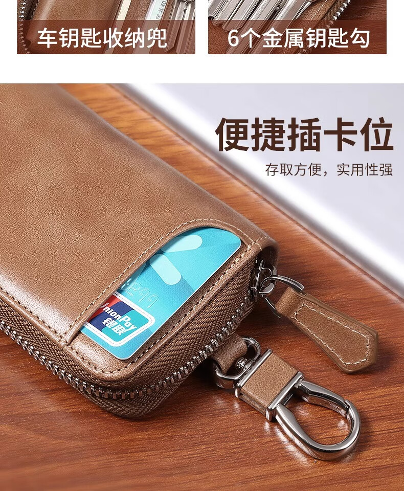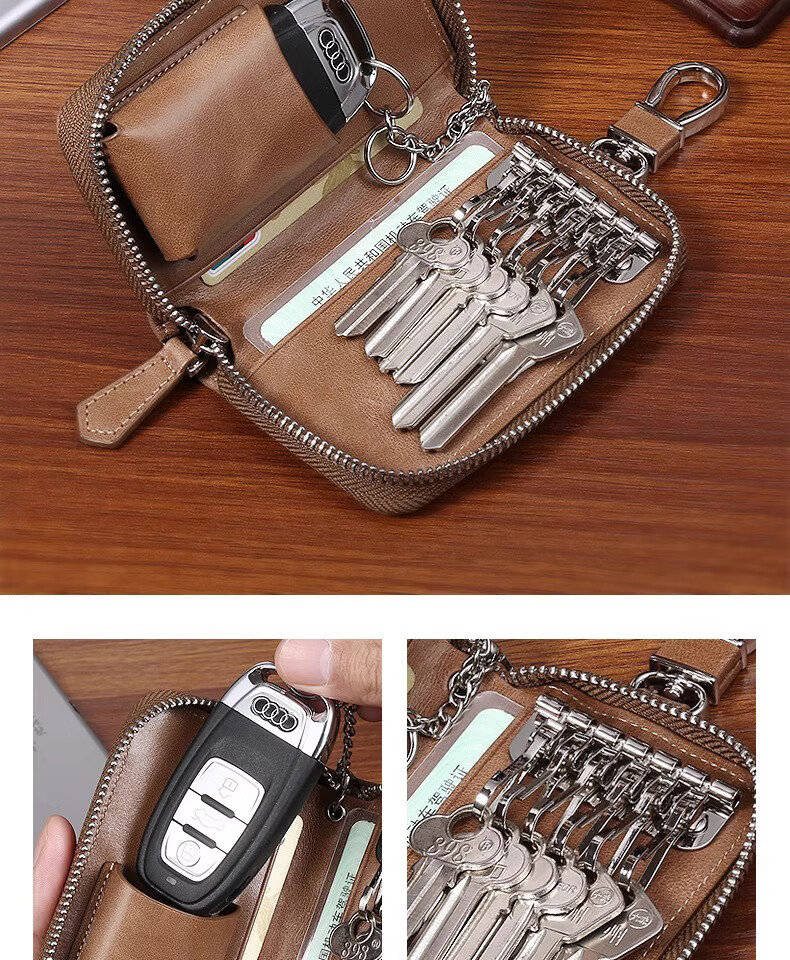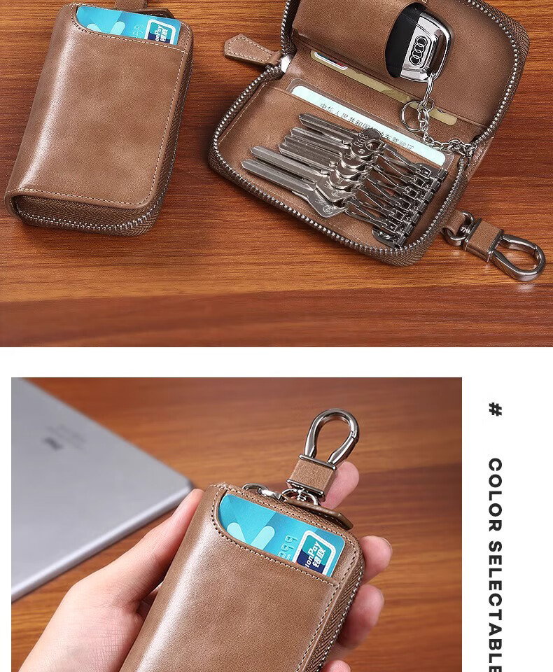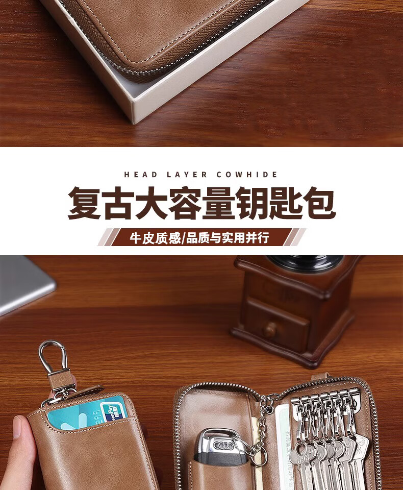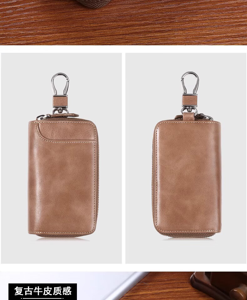 LEOEZYA genuine leather key bag for women 2025 new key bag large capacity leather texture key storage bag for men's car deep coffee_with hanging head