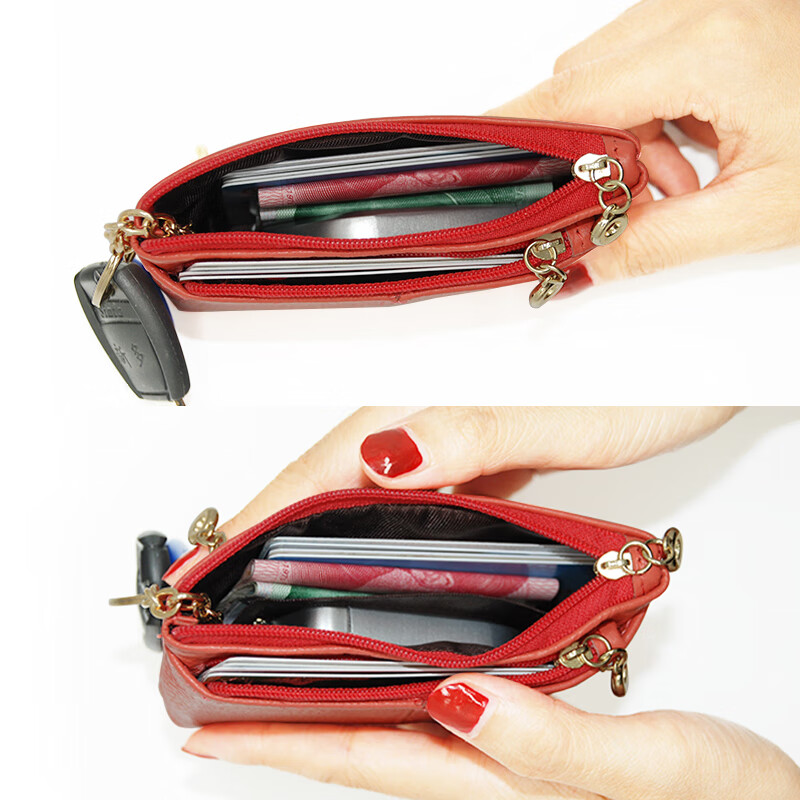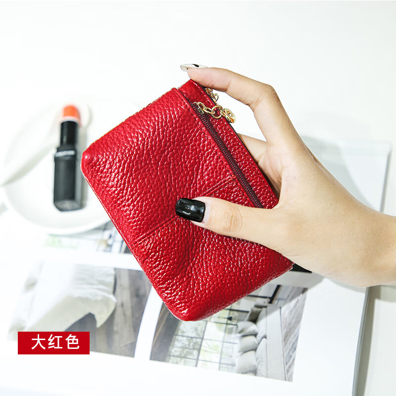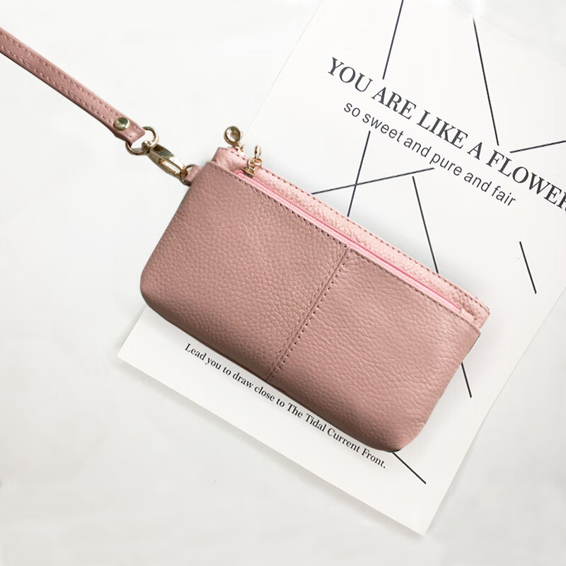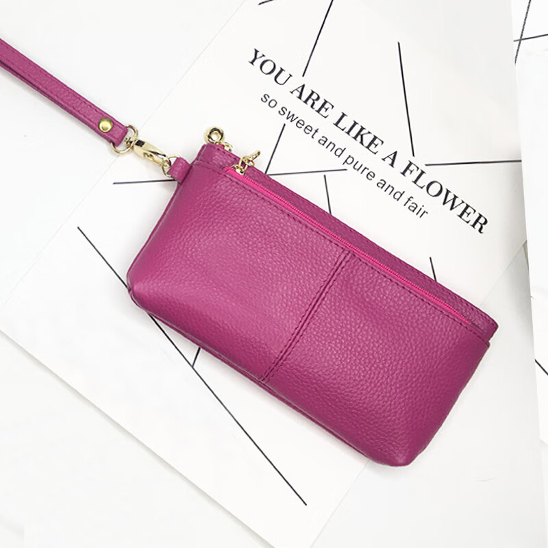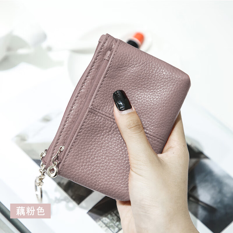 LEOEZYA Genuine Leather Key Bag Women's First Layer Cowhide Coin Purse Women's Card Holder Key Bag Soft Leather Small Bag Coin Bag Zipper Mini Mini Lotus Purple