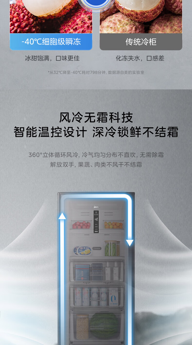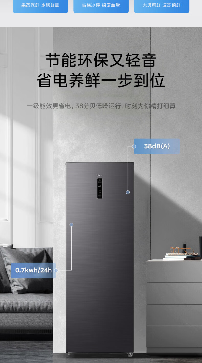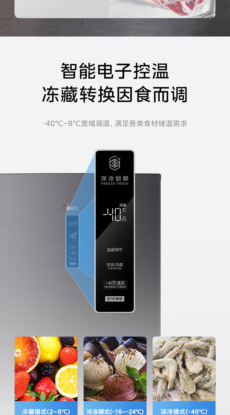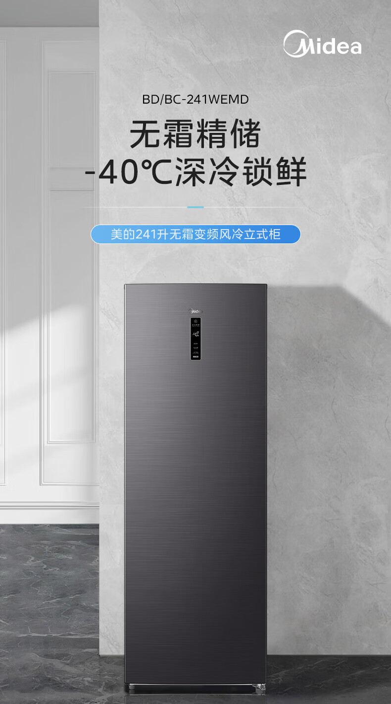 Midea 241L air-cooled vertical freezer air-cooled frost-free inverter-40 cryogenic nano silver carbon deodorizing antibacterial single-door drawer maternal and infant breast milk refrigeration and fresh-keeping cabinet refrigerator BD/BC-241WEMD 241L