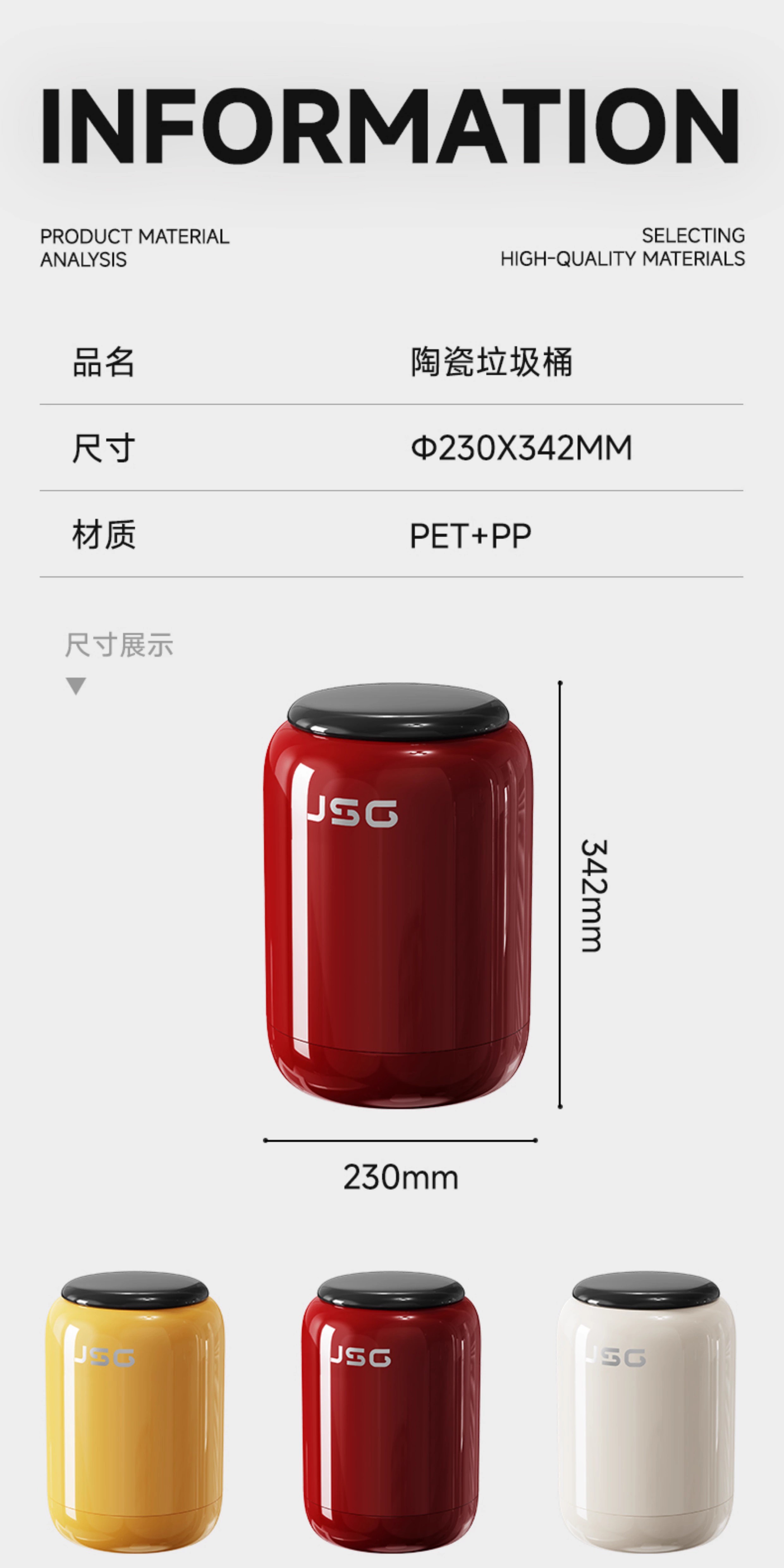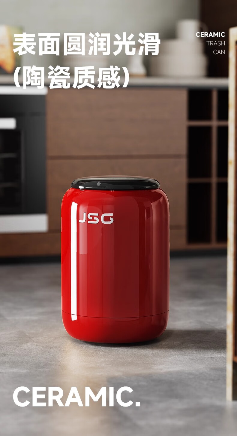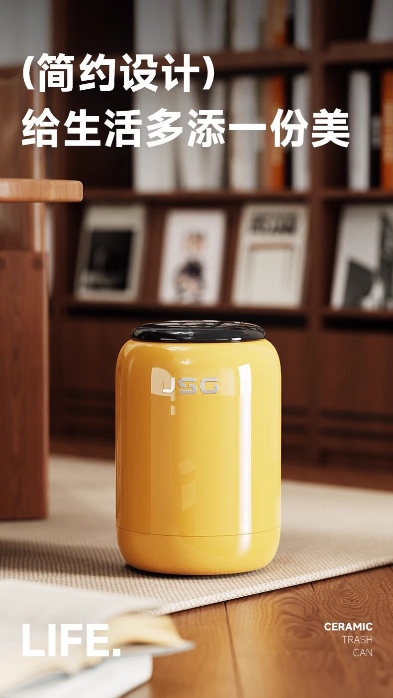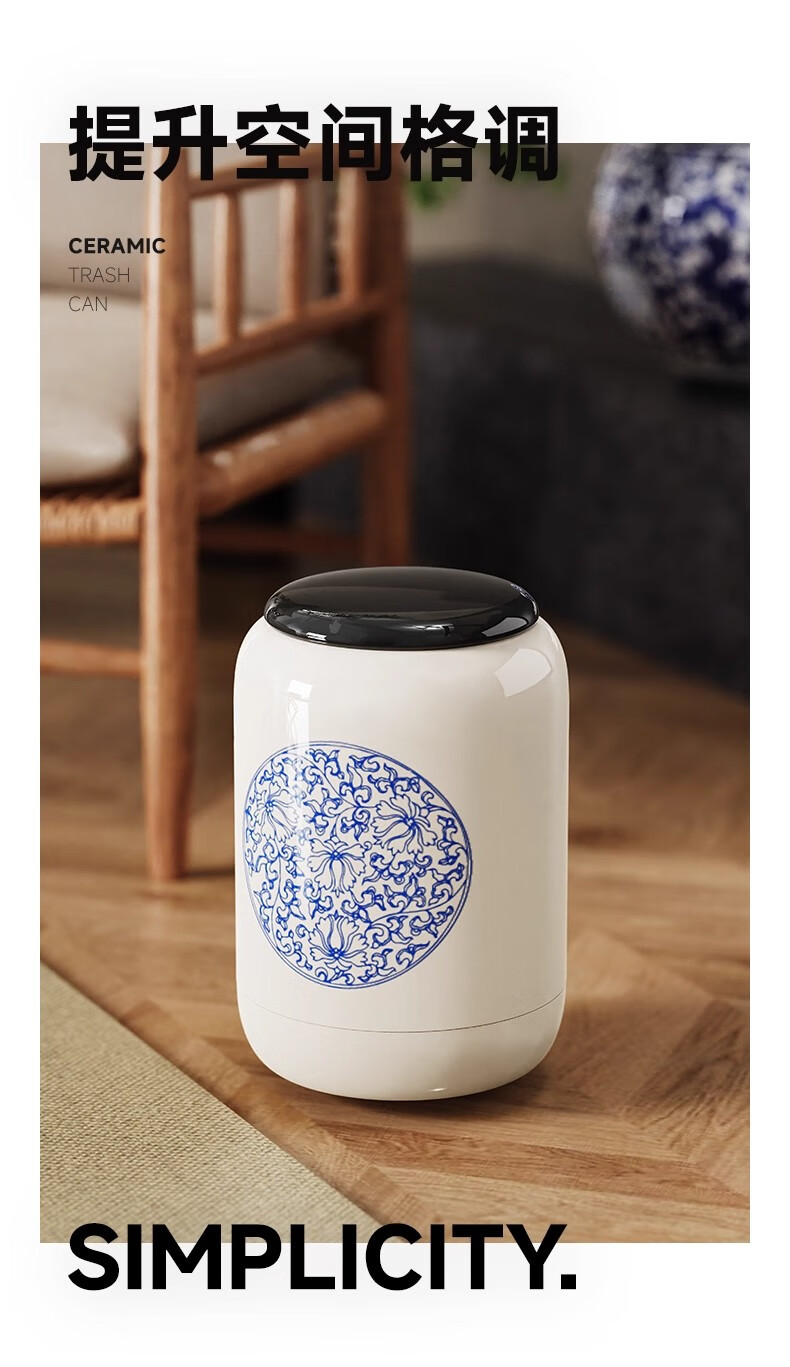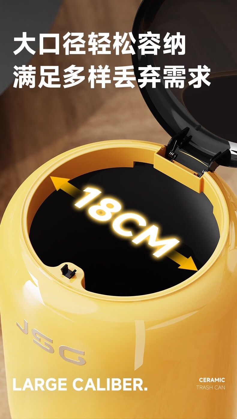 ASCOR kitchen special trash can 2026 new large capacity with lid household large size high-end living room bathroom ceramic jar - cream white push type 12L
