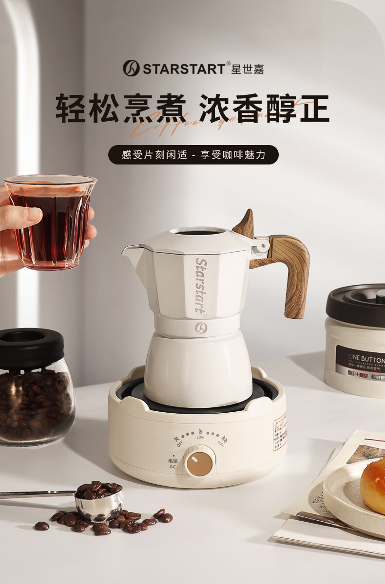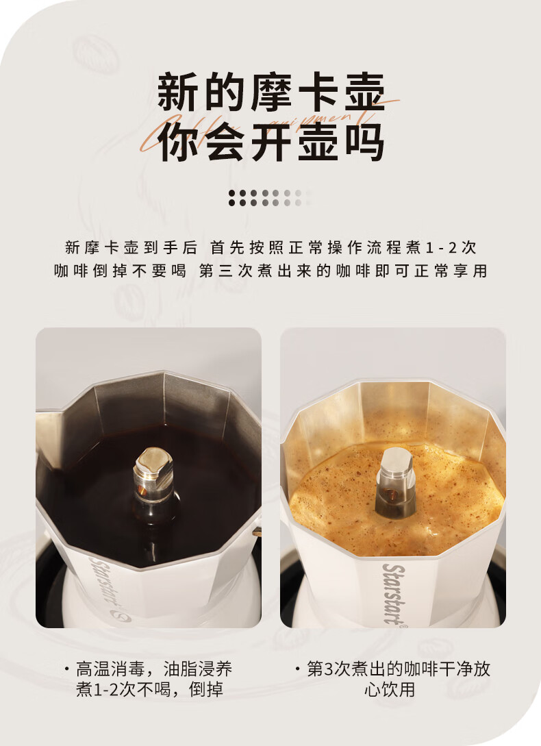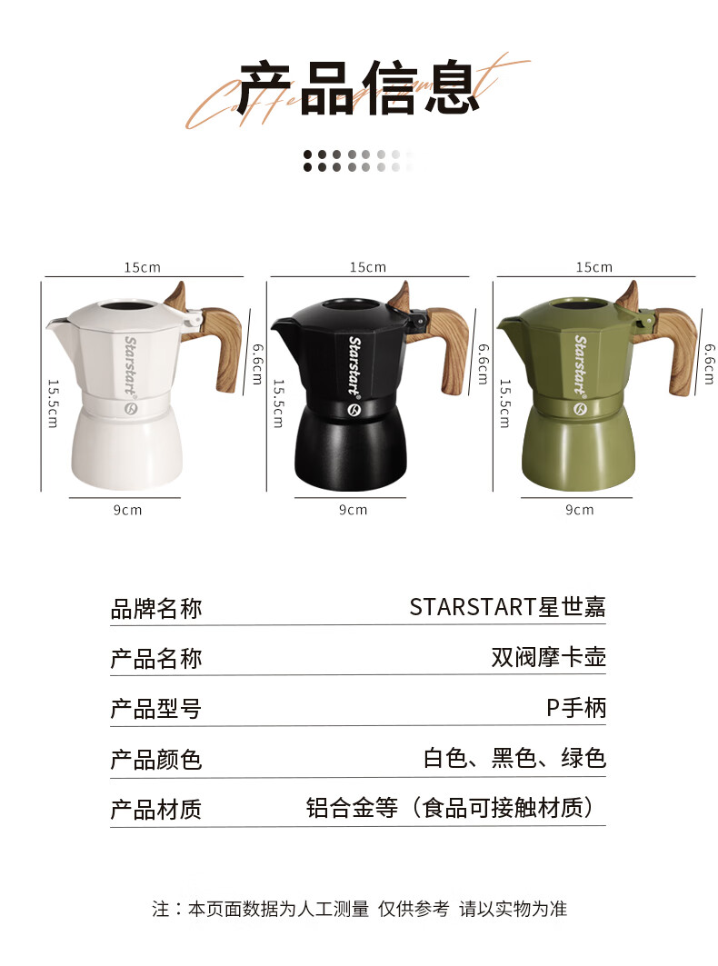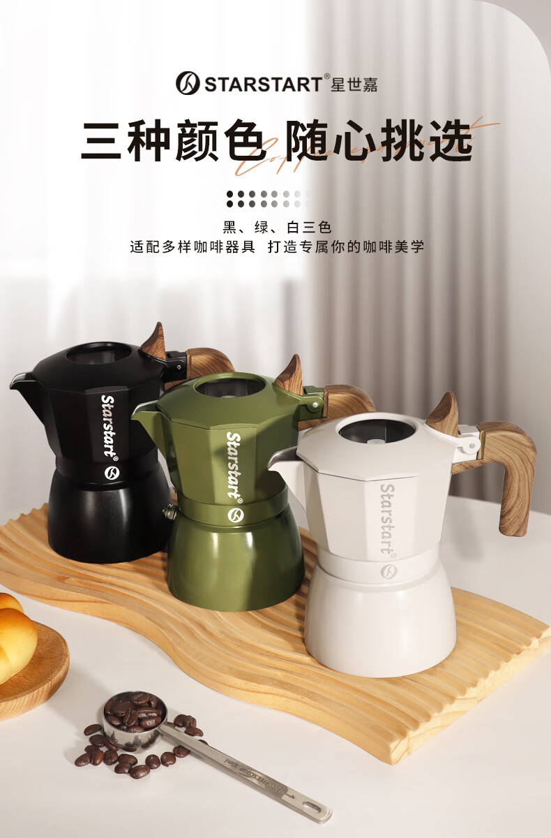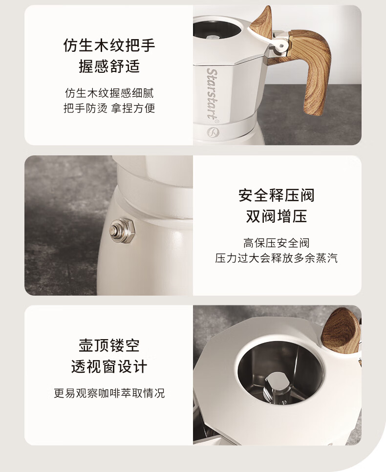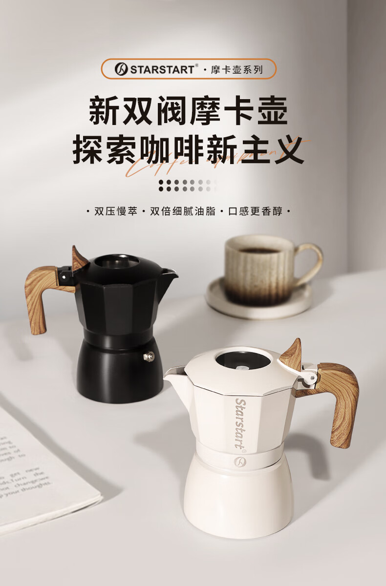 STAR-START Double Valve Moka Pot Set Third Generation Small Italian Coffee Pot Espresso Coffee Machine Serves 2 Black Double Valve Moka Pot