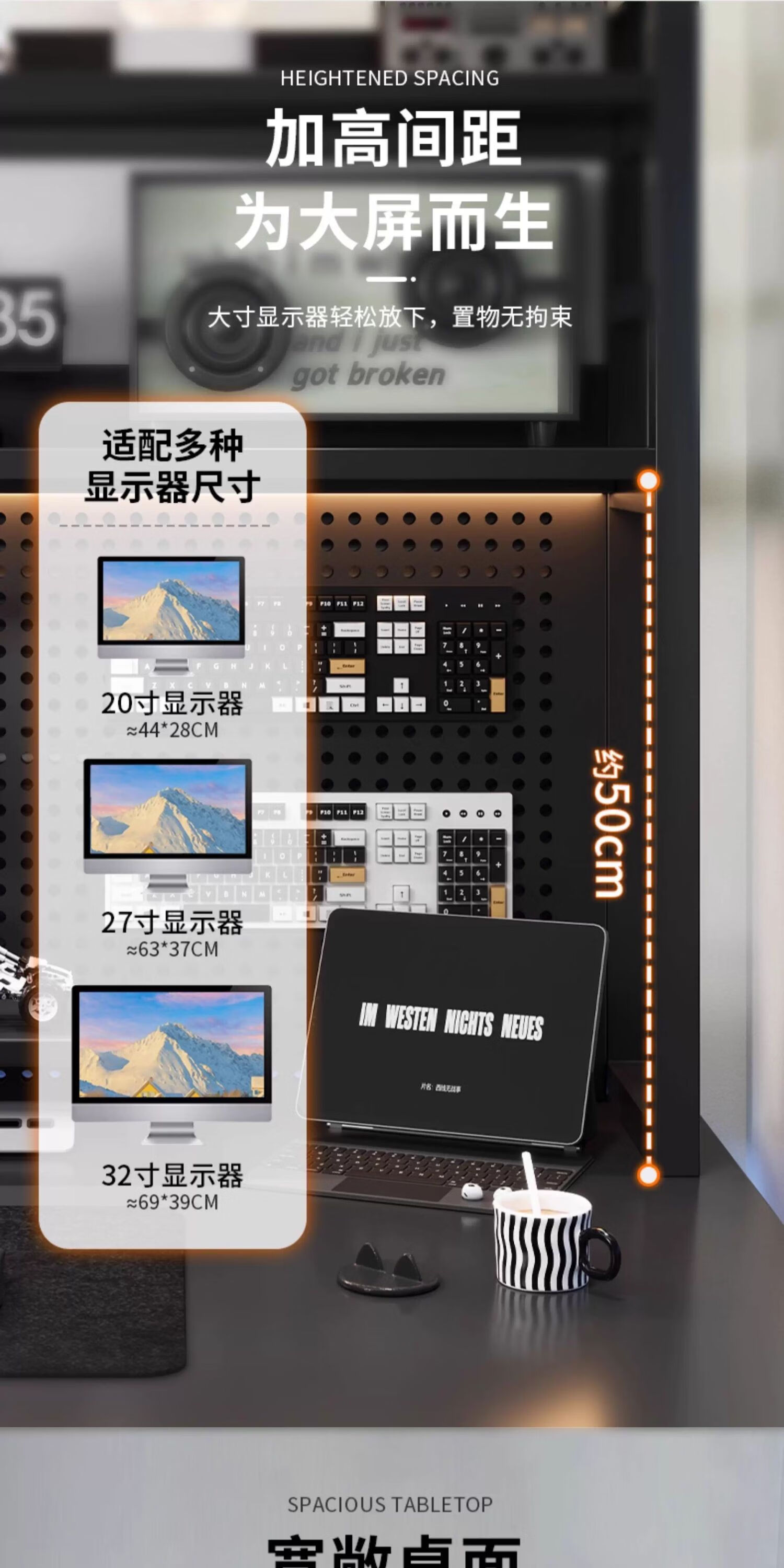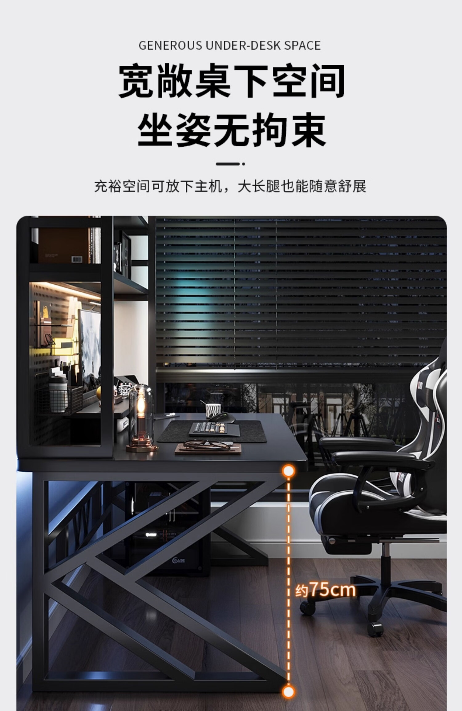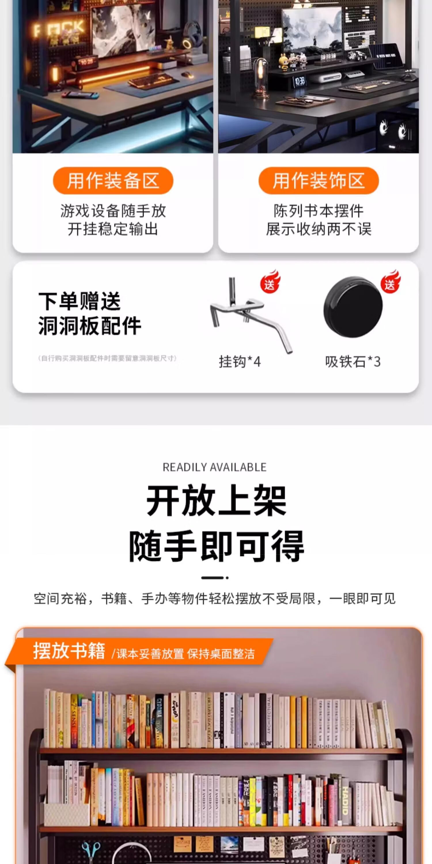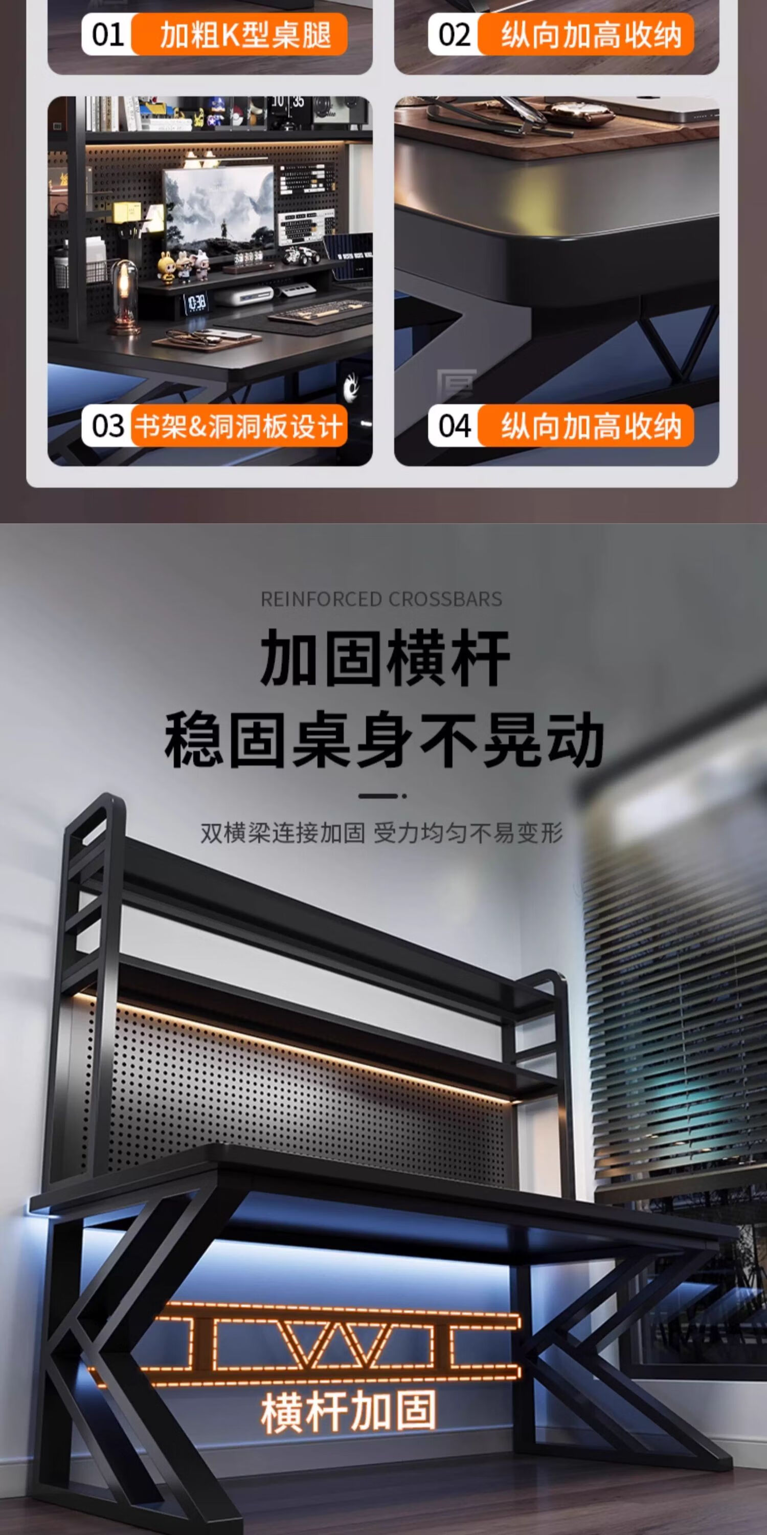Humanities Chengjia Gaming Desk Desktop Computer Table Home Multi-Layer Bookshelf Integrated Perforated Board Computer Desk Office Writing Study Desk Double-Layer Shelf E-Sports Black (A complete set of perforated board accessories will be given when ordering) Length 120 Width 60 Height 165cm