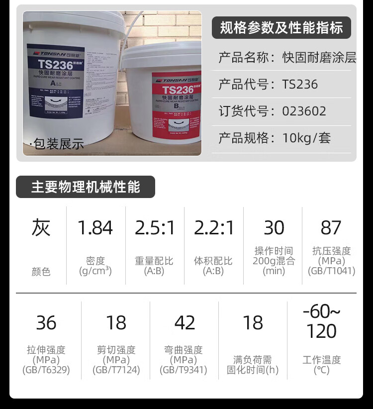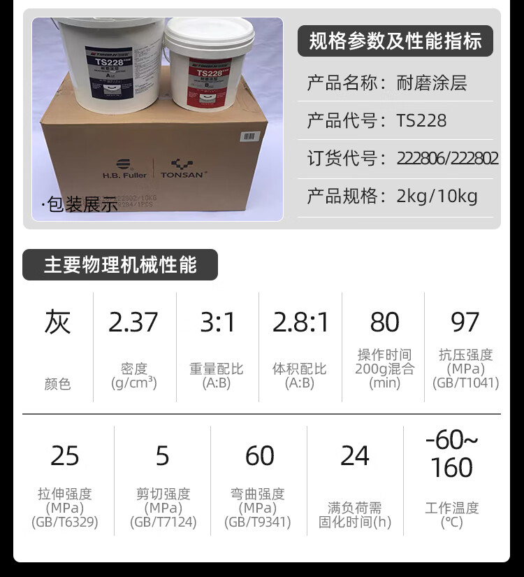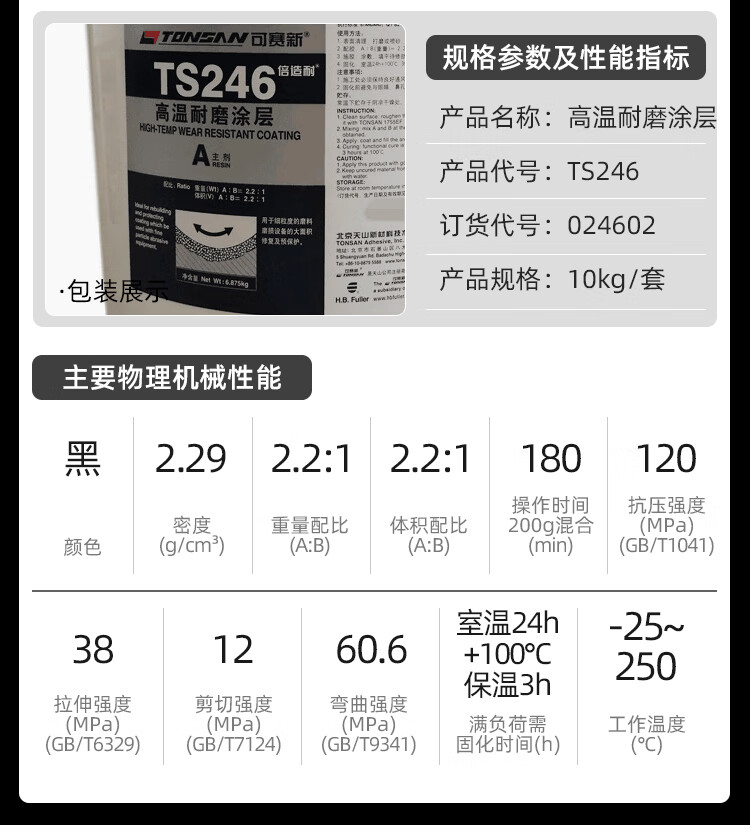 TONSAN ts226 wear-resistant coating silicon carbide metal anti-rust protective agent iron pipe sand hole repair granular glue TS226_2kg package