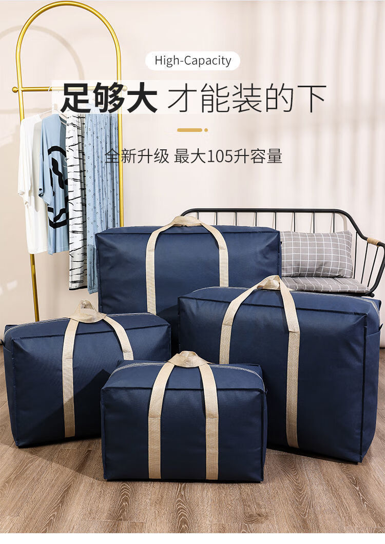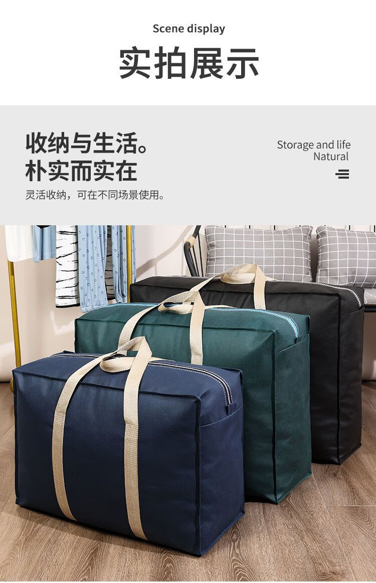 Large-capacity moving bag, quilt, clothing storage bag, luggage bag, travel packing bag with dust-proof and moisture-proof handbag, extra large size, length 80X height 55X side width 26cm, dark green thickened, dust-proof and moisture-proof, large capacity travel moving bag