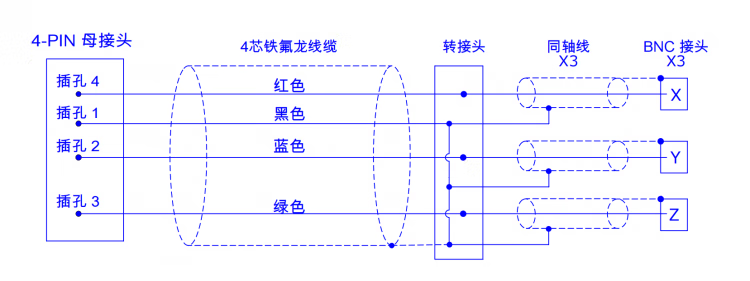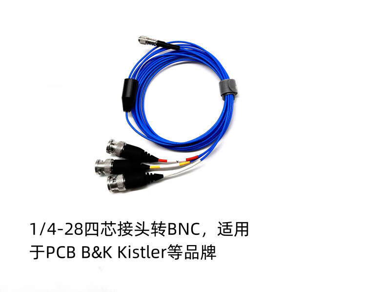 1/4-28UNF to BNC four-core connector suitable for PCB three-axis sensor vibration acceleration connection line customization blue 3M
