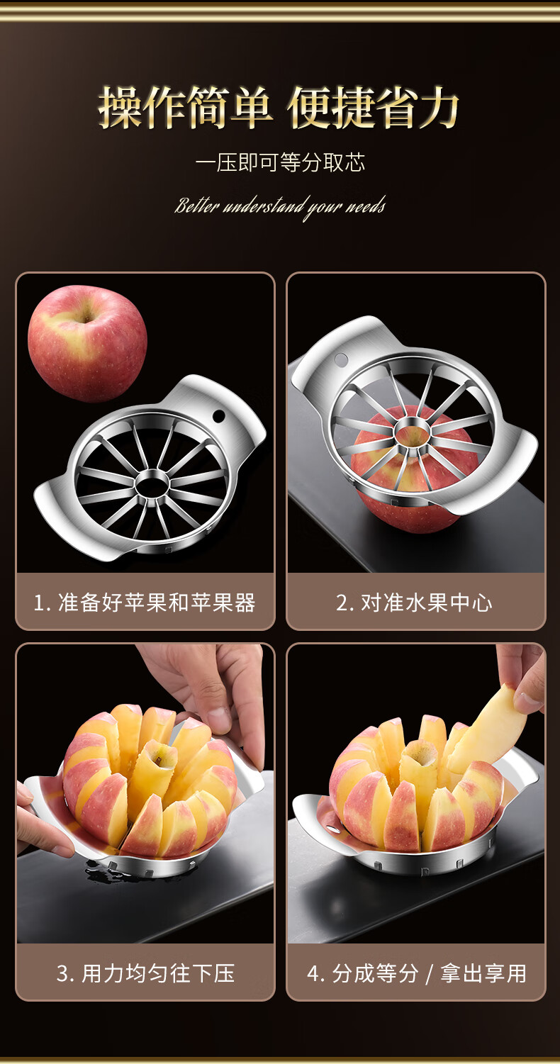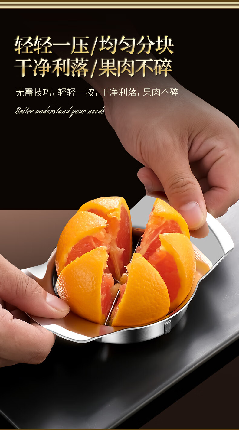 CLCEY German imported quality orange slicer 316 stainless steel fruit slicer divider plate cutting 304 steel_orange cut into 6 segments_small size