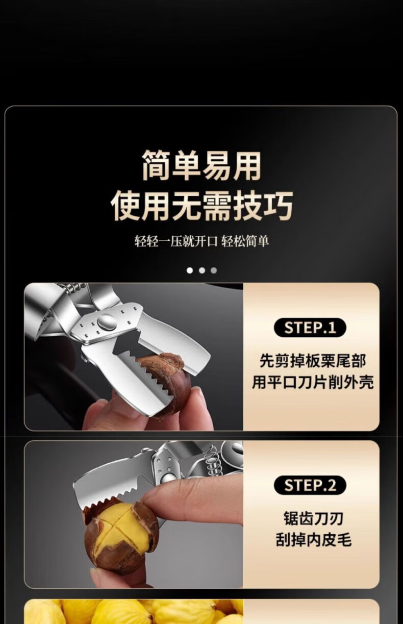 KDISV German Chestnut Opener Chestnut Peeling Artifact Cross Chestnut Clip Stainless Steel Shelling and Cutting Chestnut Peeling Tool Thickened ABS Model 2-in-1 Chestnut Clip Universal for Large and Small Chestnuts + Steel Nails