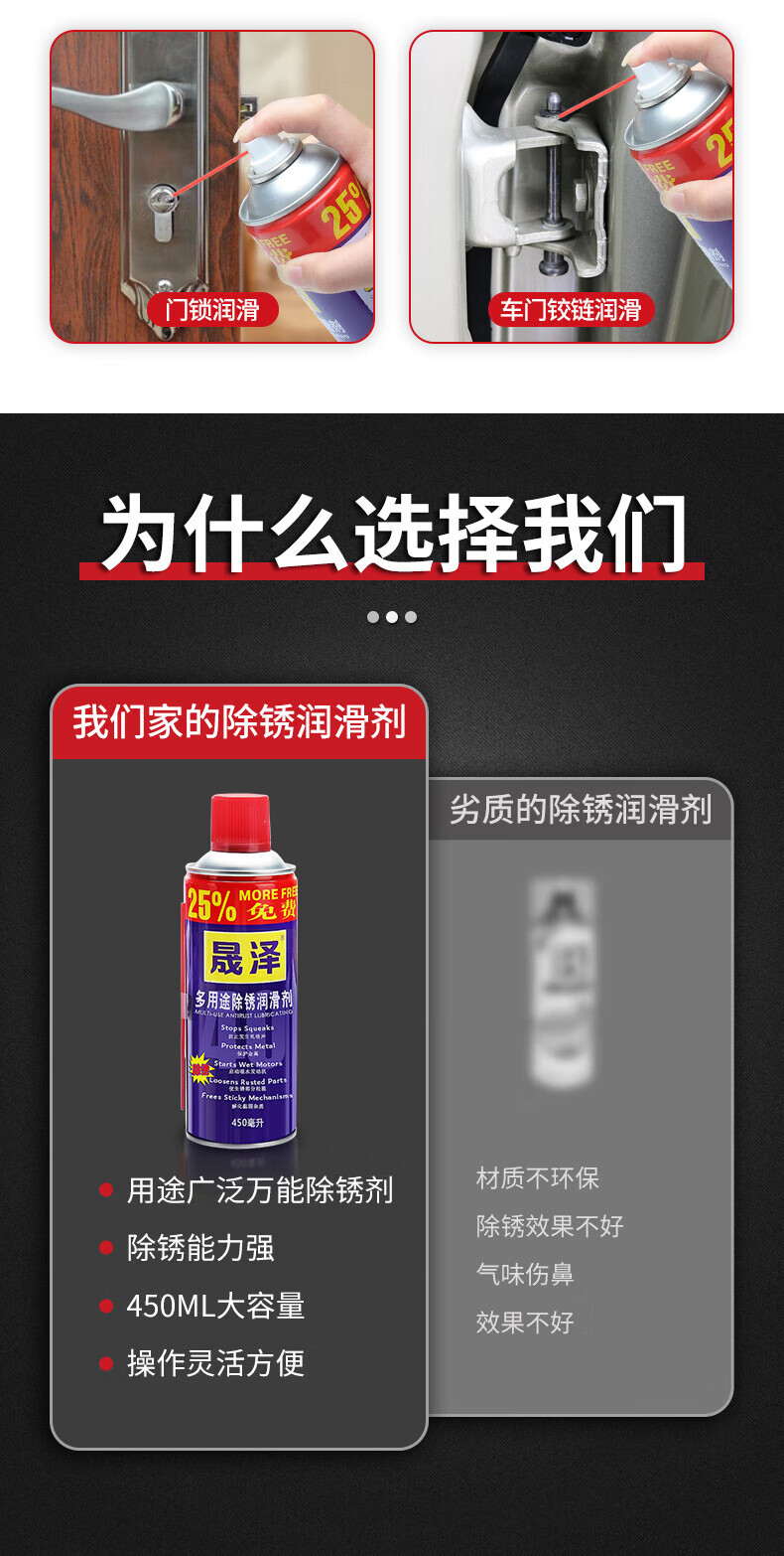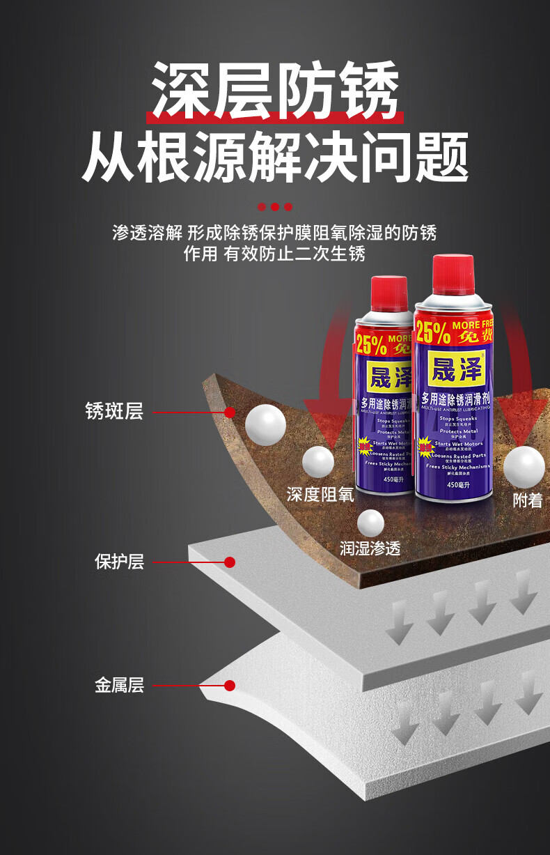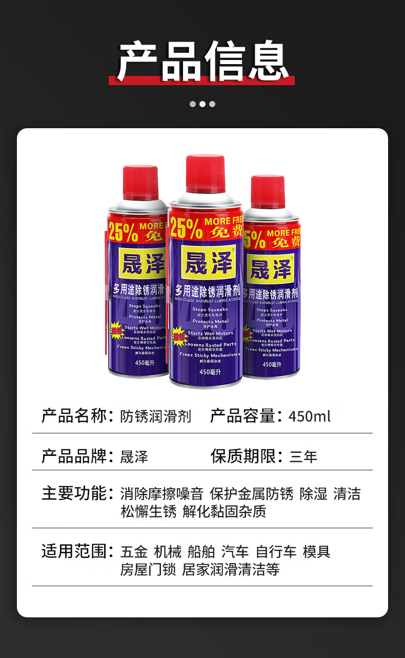 FGHGF rust remover metal anti-rust oil multi-purpose metal curing agent car screw loosening agent quick cleaning spray Shengze-rust removal lubricant 1 box (24 bottles) 450m