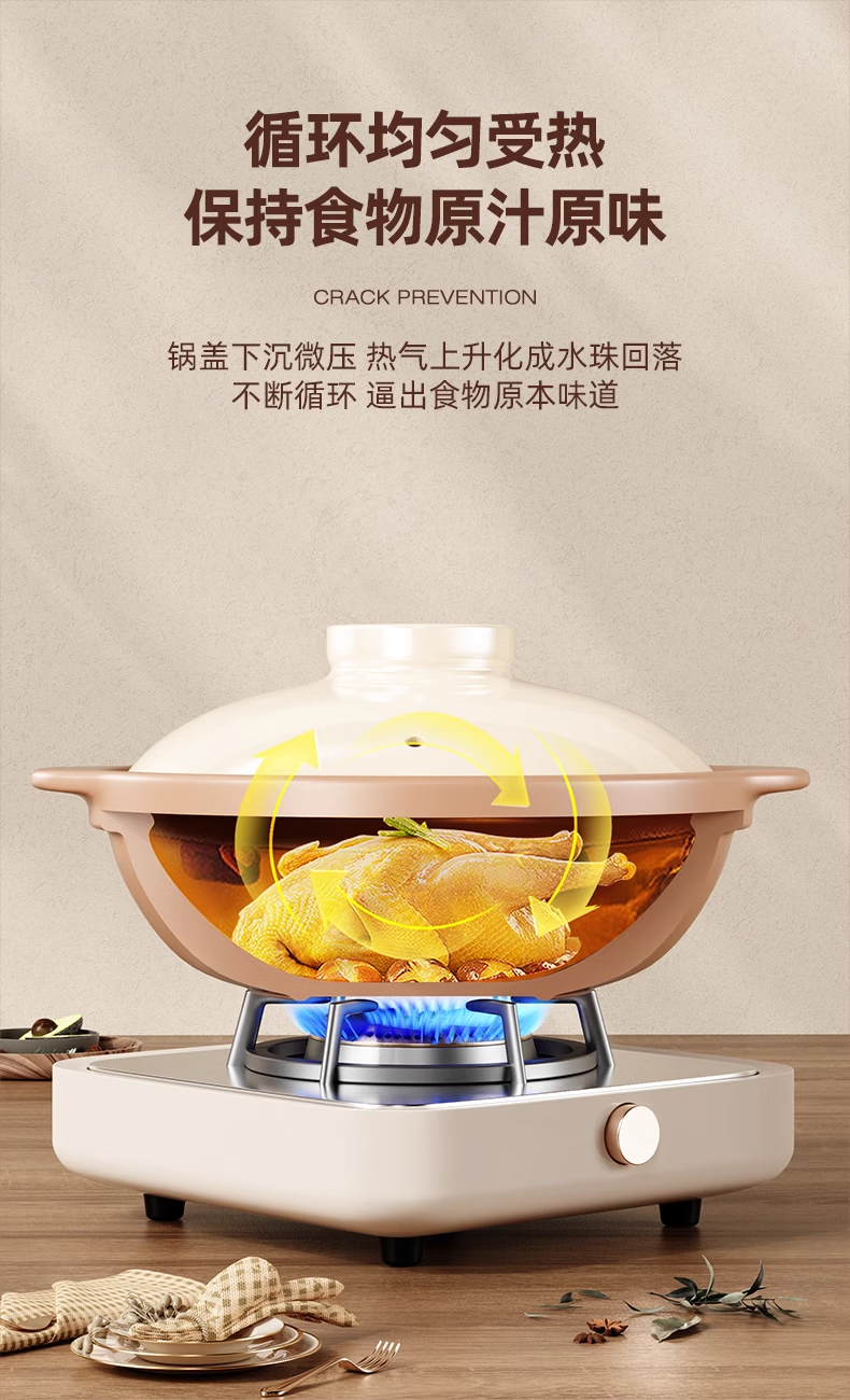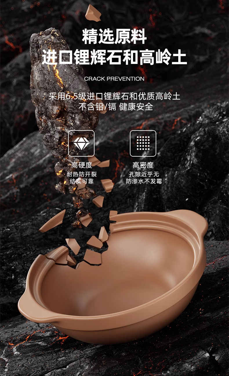 Clay pot for household gas stoves, high temperature resistant, dry-fired and non-cracking, small clay pot rice casserole, ceramic pot, 2.1L - with lid, natural original pottery, dry-fired and non-cracking, suitable for 4-5 people 2.1L