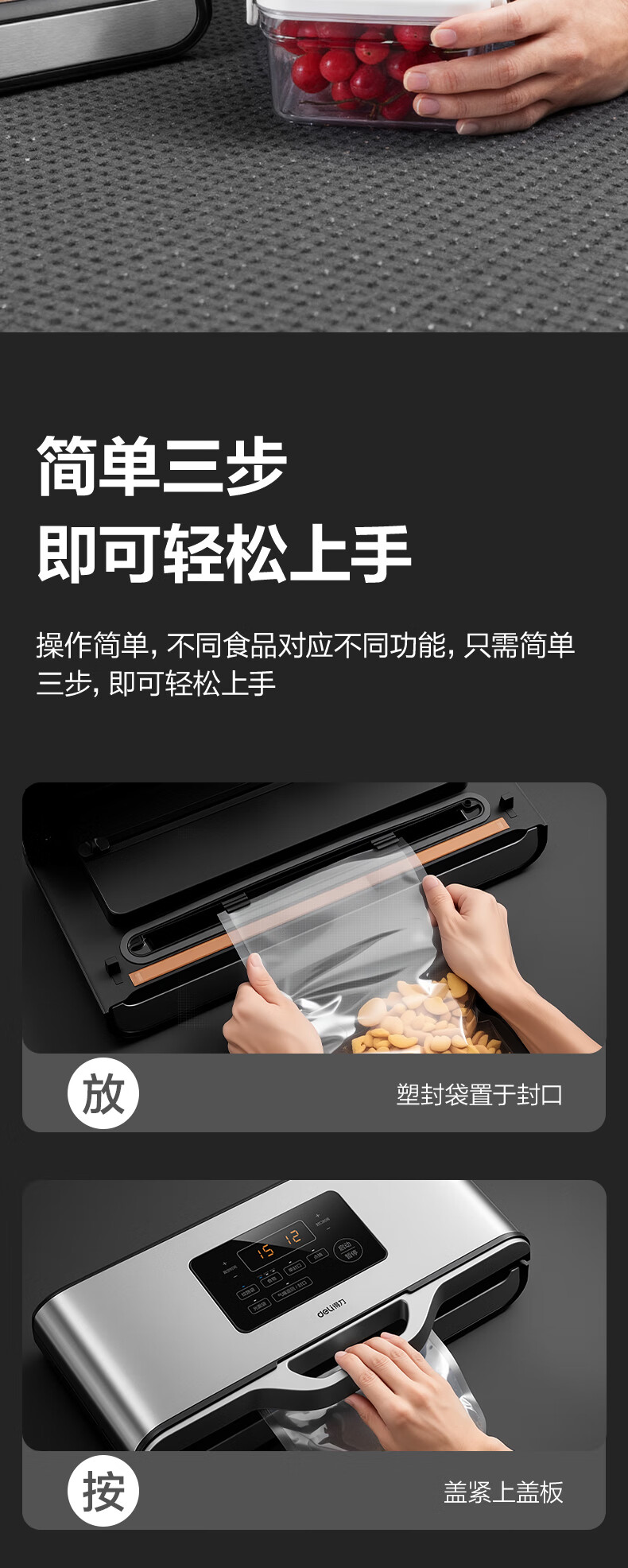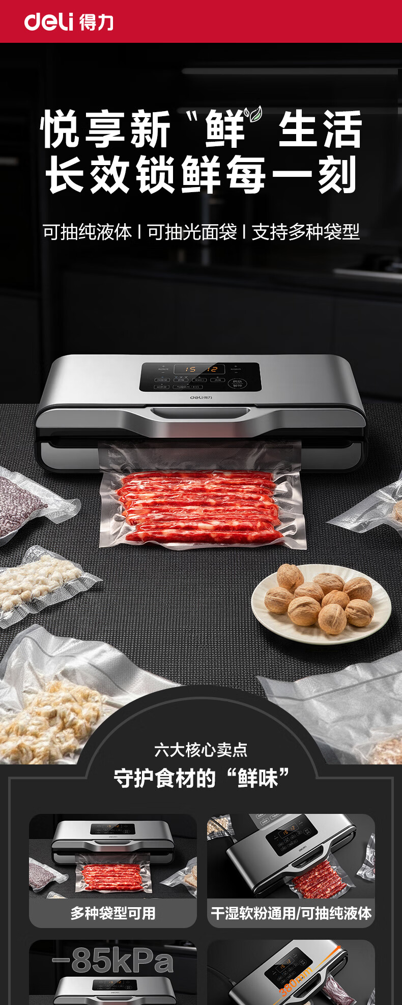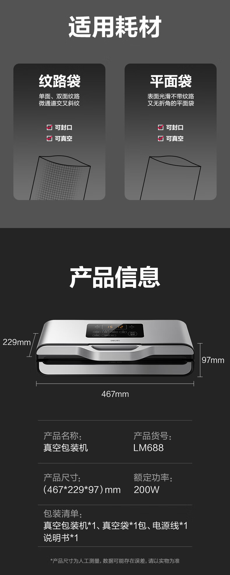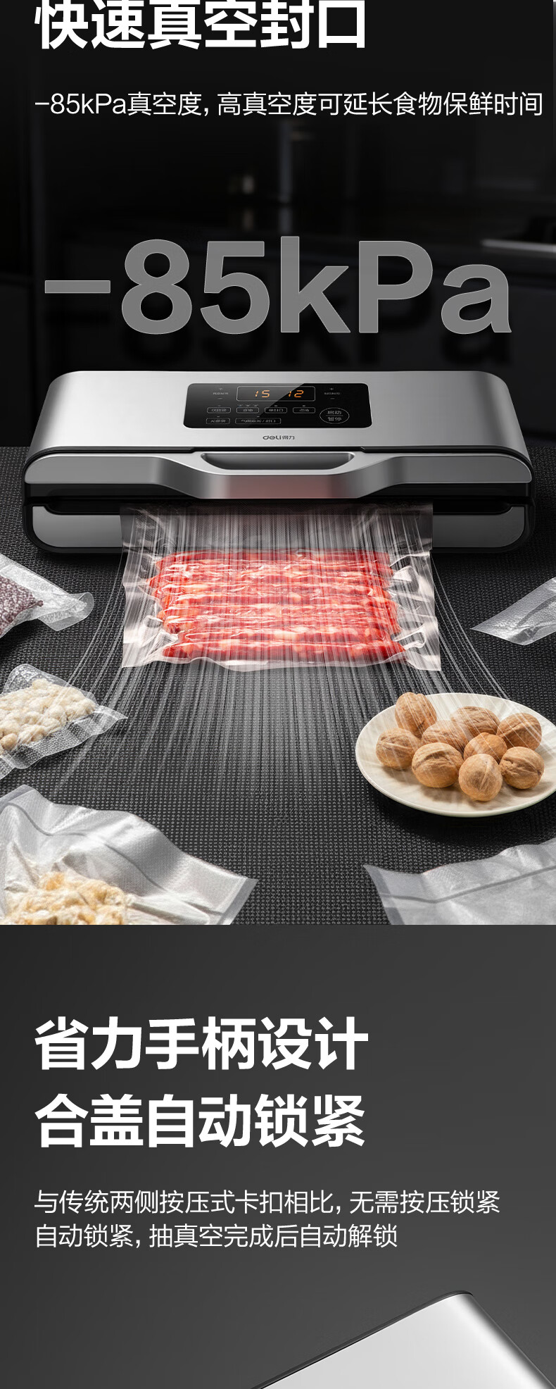 Deli vacuum sealing machine, vacuum packaging machine, no bag picking, freshness sealing machine, small household new model, fully automatic, Deli LM688 vacuum machine, no bag picking, 85KPA, 7mm widened heating wire