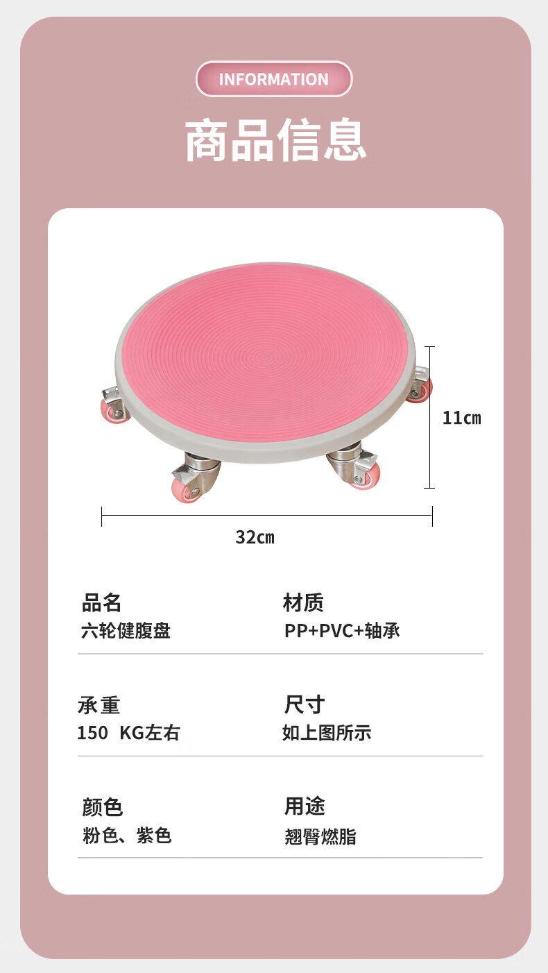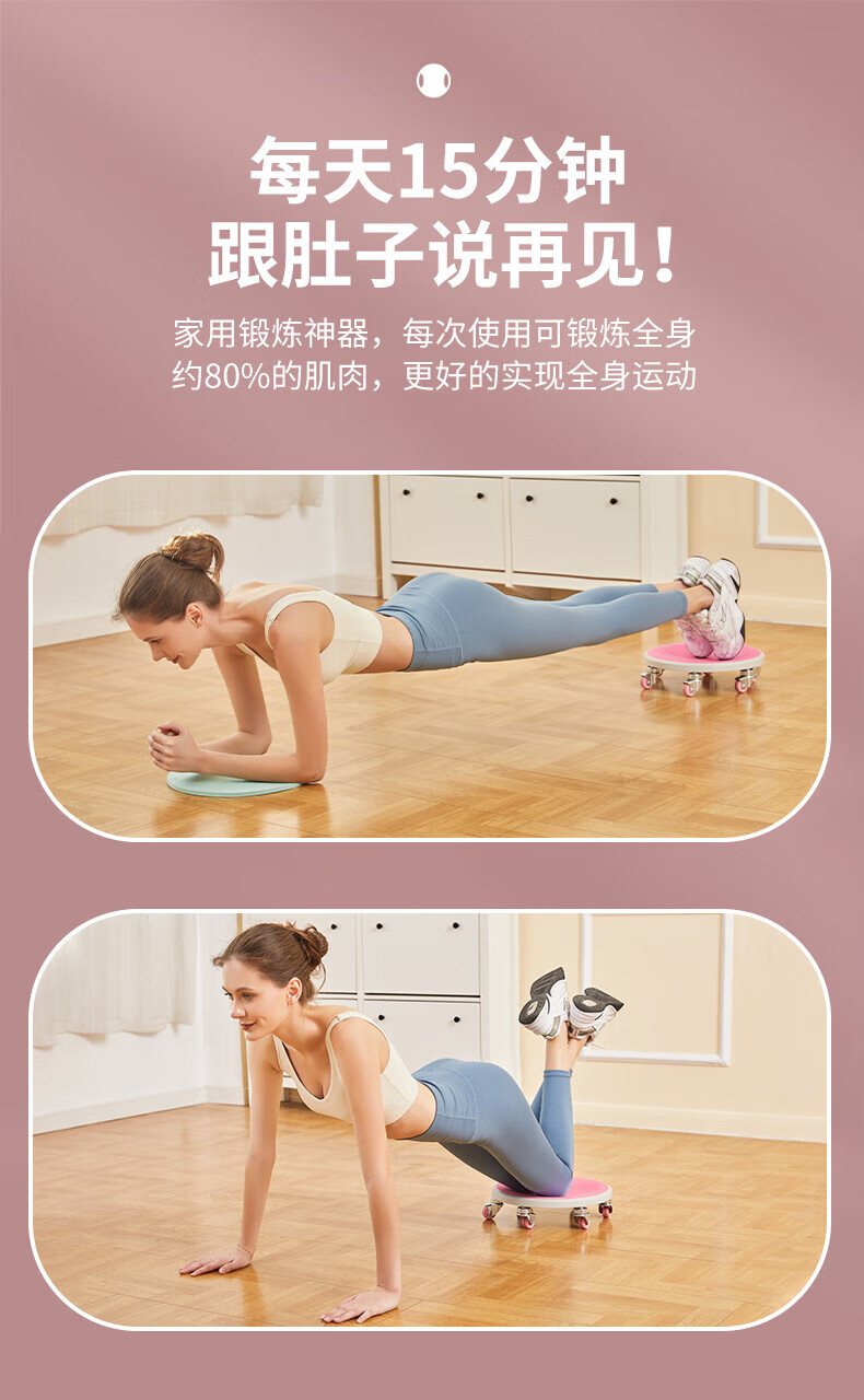 Fantasy Six-Wheel Sliding Disk, Abdominal Disc, Silent Abdominal Muscle Universal Wheel, Sports Equipment, Abdominal Wheel, Fitness Home Sliding Disk, Goddess Pink Six-Wheel Sliding Disc + Large Support Pad + Thick Kneeling