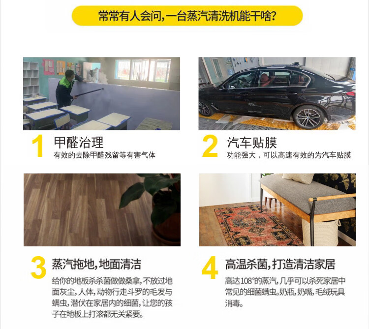 Zhong Zhanggui high temperature and high pressure steam cleaning machine household sterilization and disinfection machine car film formaldehyde removal fumigation oil cleaning bare metal yellow 2000W high configuration machine new model.