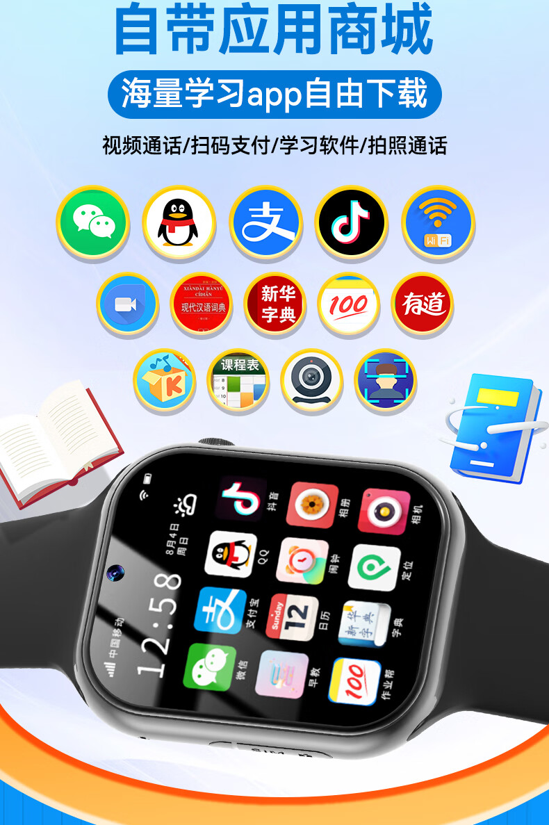 Little Genius Cool Cover 2026 New Model Can WeChat QQ Video Call 4G5G Full Netcom Children's Phone Watch WiFiGPS Positioning Elementary School Junior High School Men and Women Waterproof Smart Class Disabled Top Matching Fan-Change Payment + Video Call + Positioning
