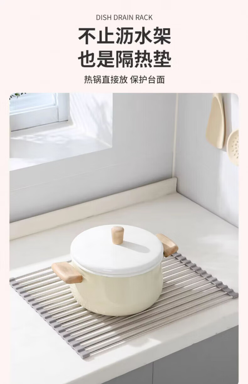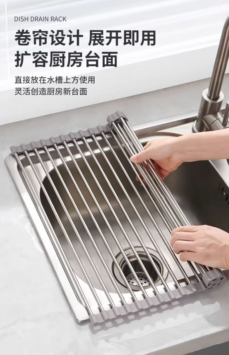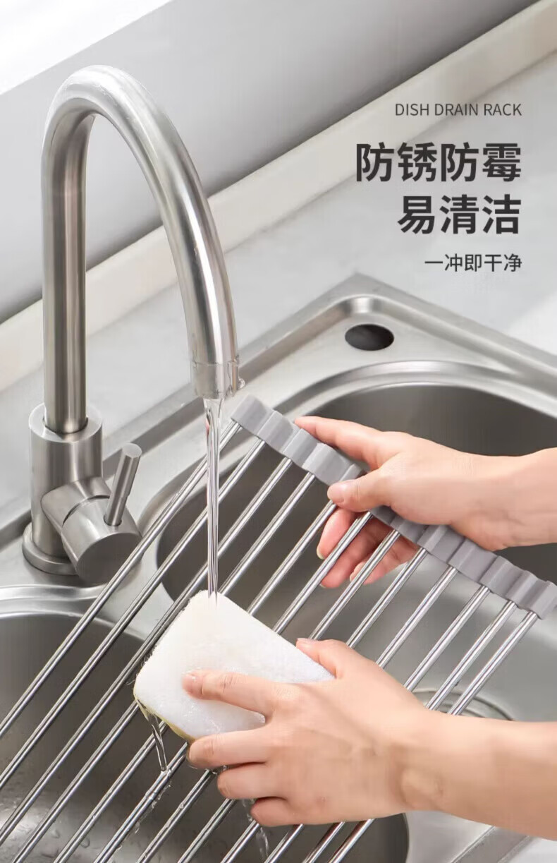 Meishut wash basin sink drain rack household kitchen foldable edge stainless steel kitchen rack dish storage and drying foldable silicone drain rack 12 tubes 37cm*24cm