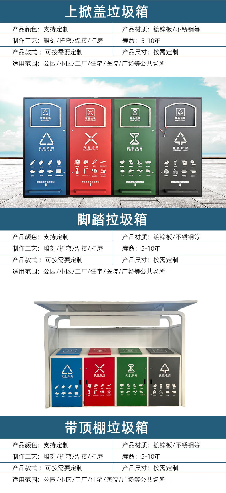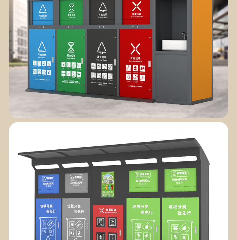 Ready-made foot-operated garbage sorting box, outdoor multi-category garbage cabinet classification, intelligent garbage pavilion factory direct sale, foot-operated garbage room (ready stock) customized