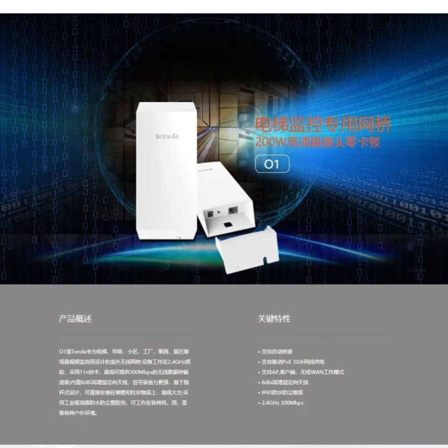 Tenda wireless bridge high-power 5G outdoor 5km bridge-less switch monitoring O1 O3 O2 5 units 01 CPE2.4G set 500 meters (5 units)