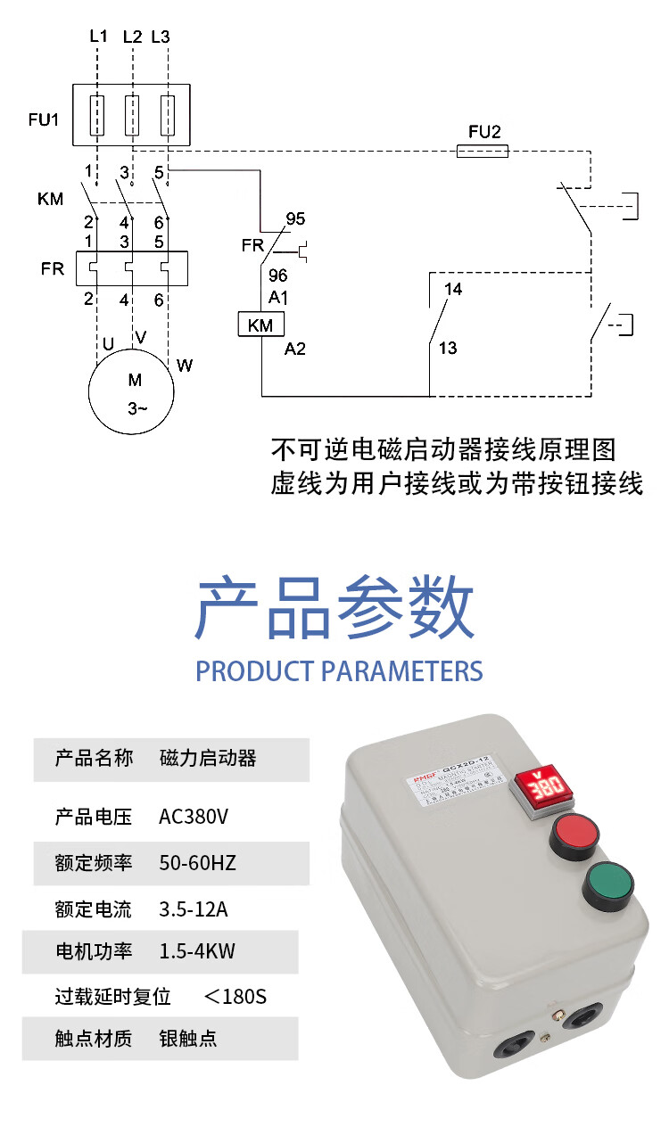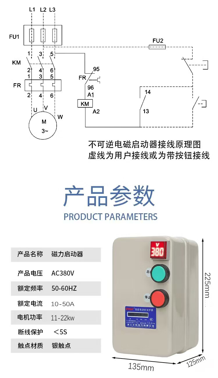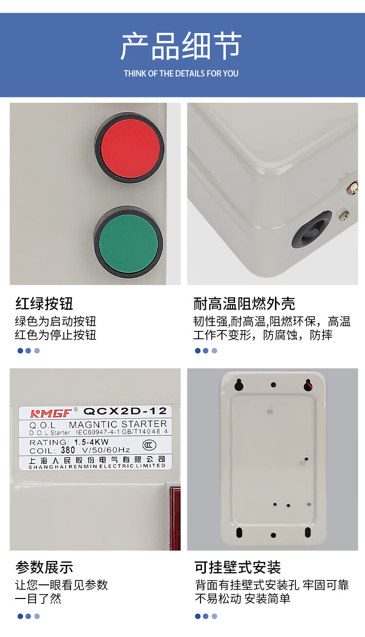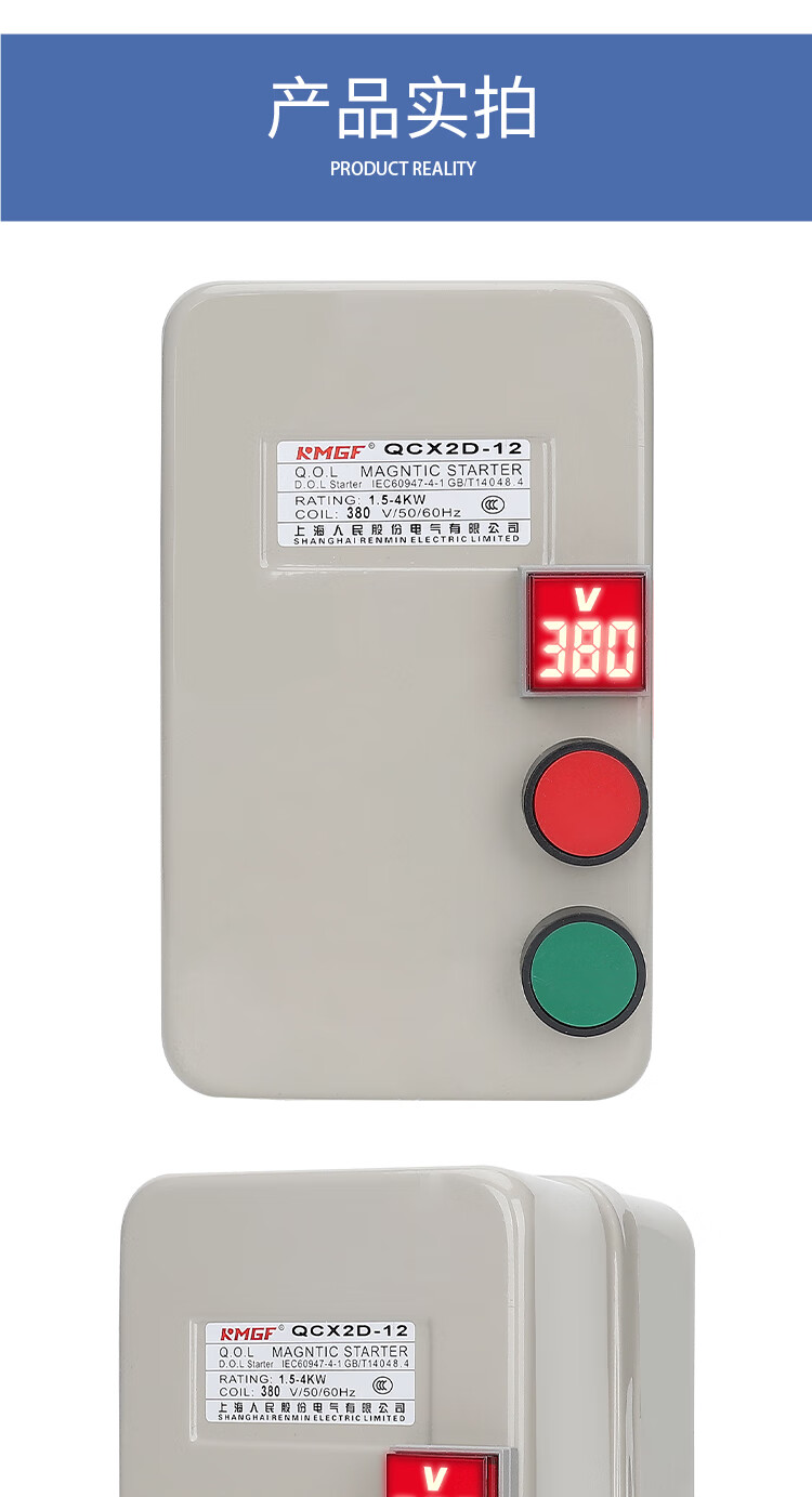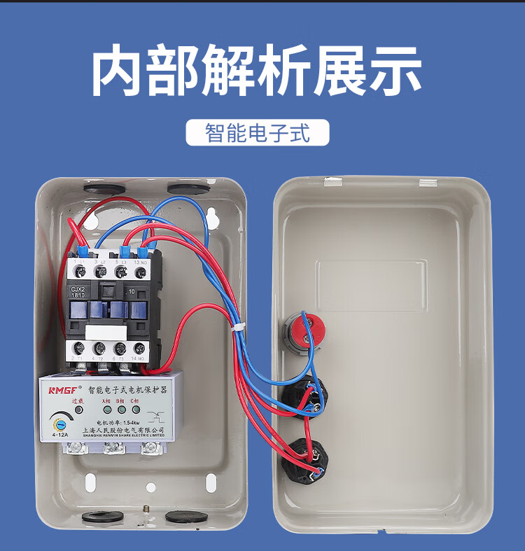 380V with voltage indication water pump fan crusher three-phase phase loss motor start control box magnetic starter phase loss overload model 380V with voltage display motor dedicated 5.5-7.5KW