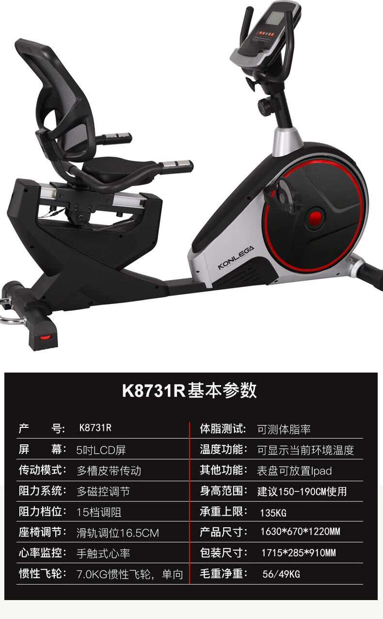 Kang Lejia horizontal exercise bike home bicycle indoor sports bicycle middle-aged and elderly fitness equipment lower limb training black