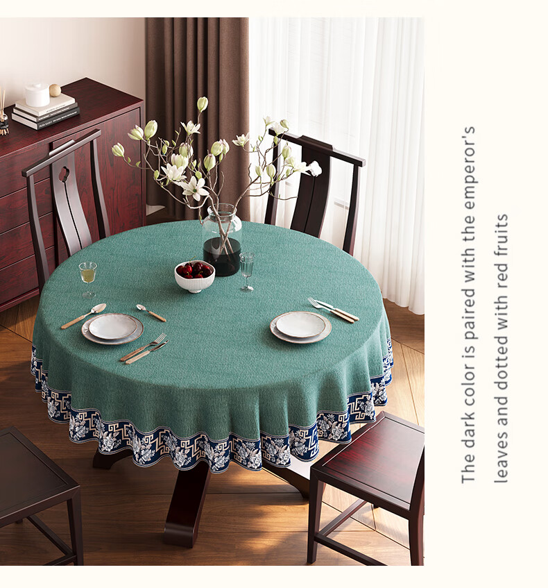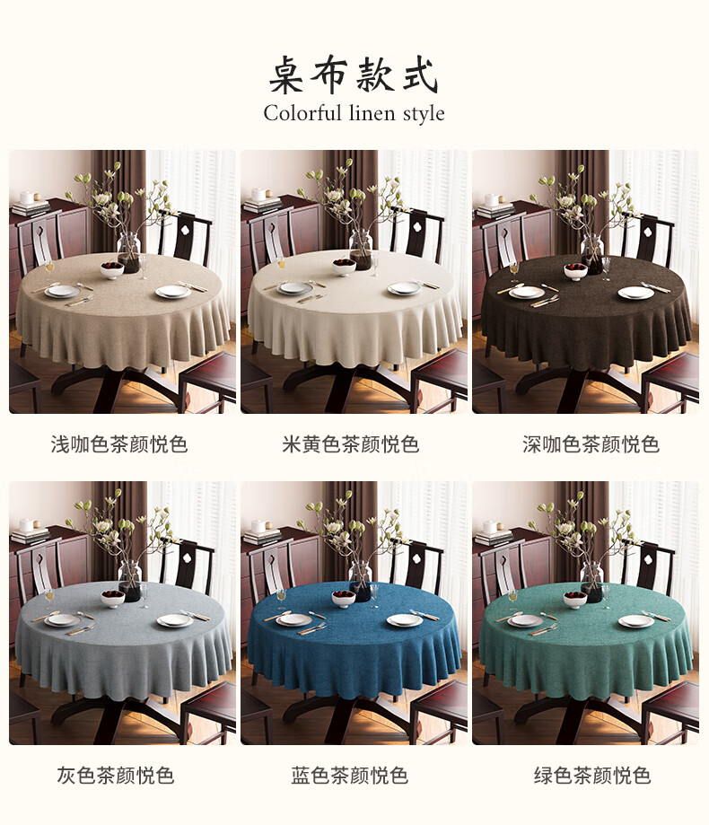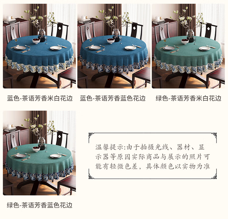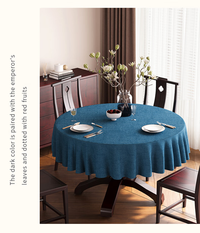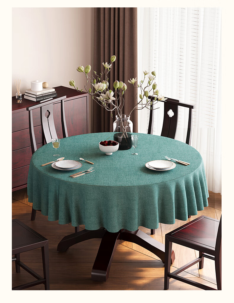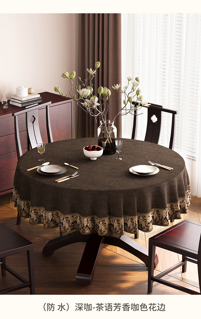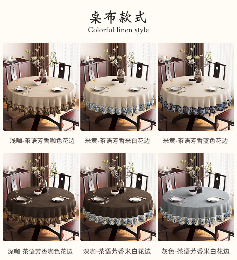 Beate Lesch new Chinese style tablecloth light luxury and high-end 2025 new large round table tablecloth cotton and linen fabric dining table coffee table tablecloth (waterproof) blue-tea color 2.6m round tablecloth (recommended for round tables with a diameter of less than 2.2m)