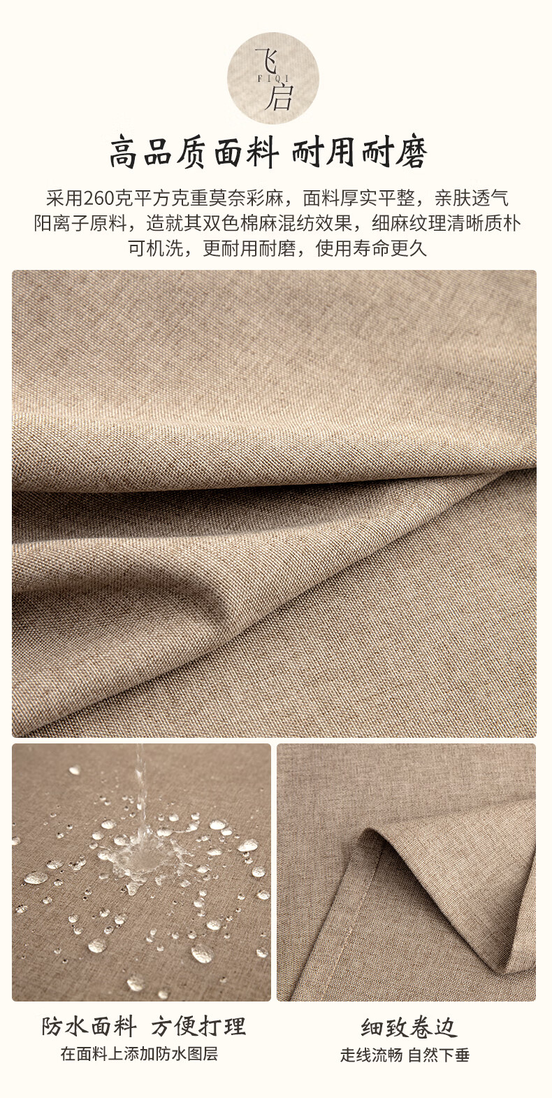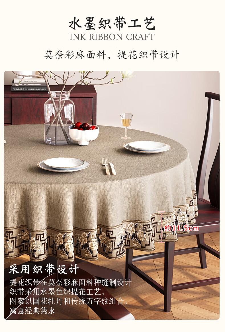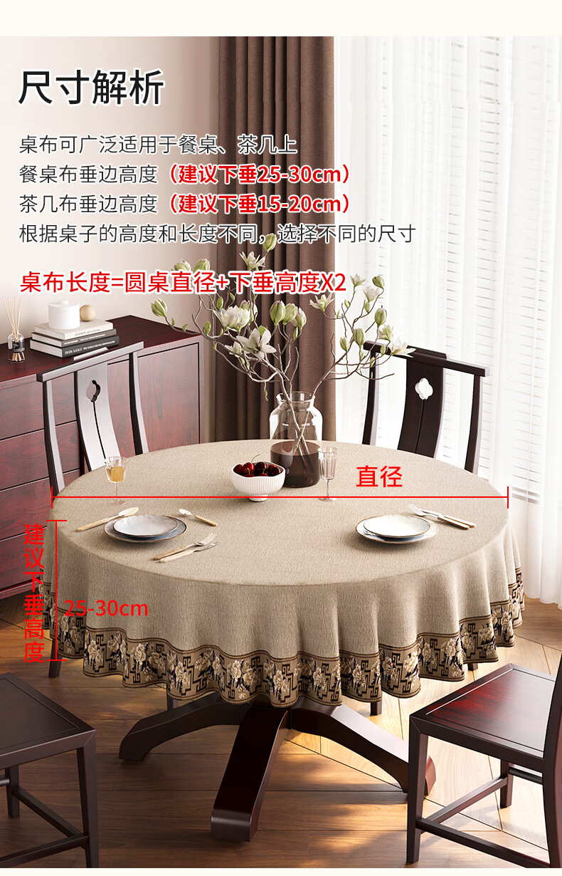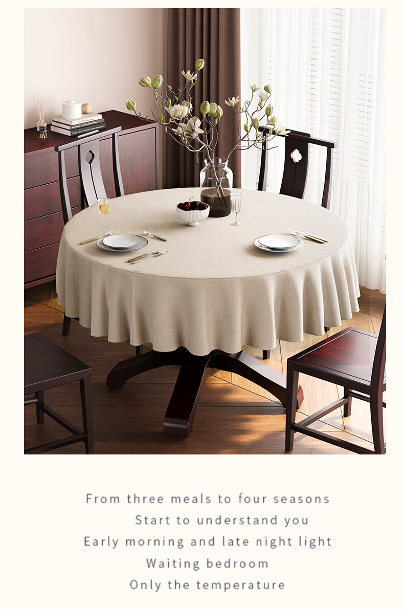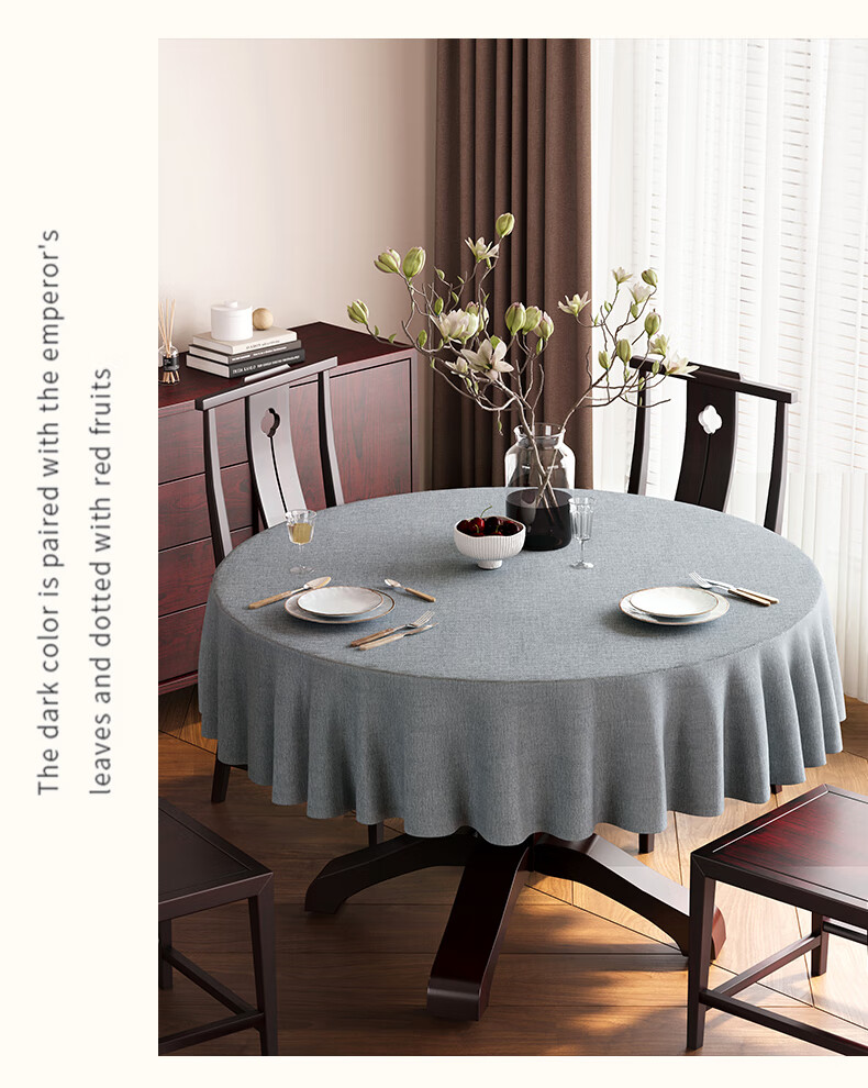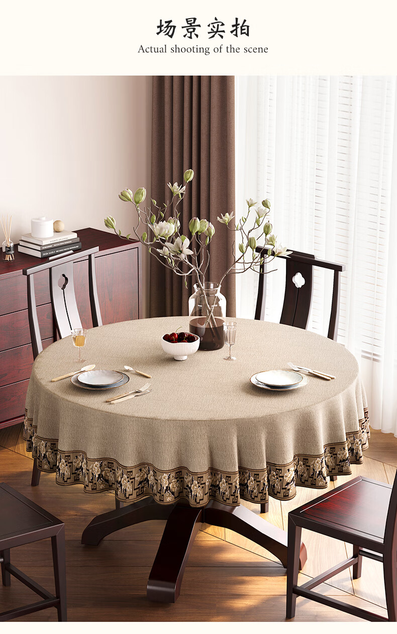 Beate Lesch new Chinese style tablecloth light luxury and high-end 2025 new large round table tablecloth cotton and linen fabric dining table coffee table tablecloth (waterproof) blue-tea color 2.6m round tablecloth (recommended for round tables with a diameter of less than 2.2m)