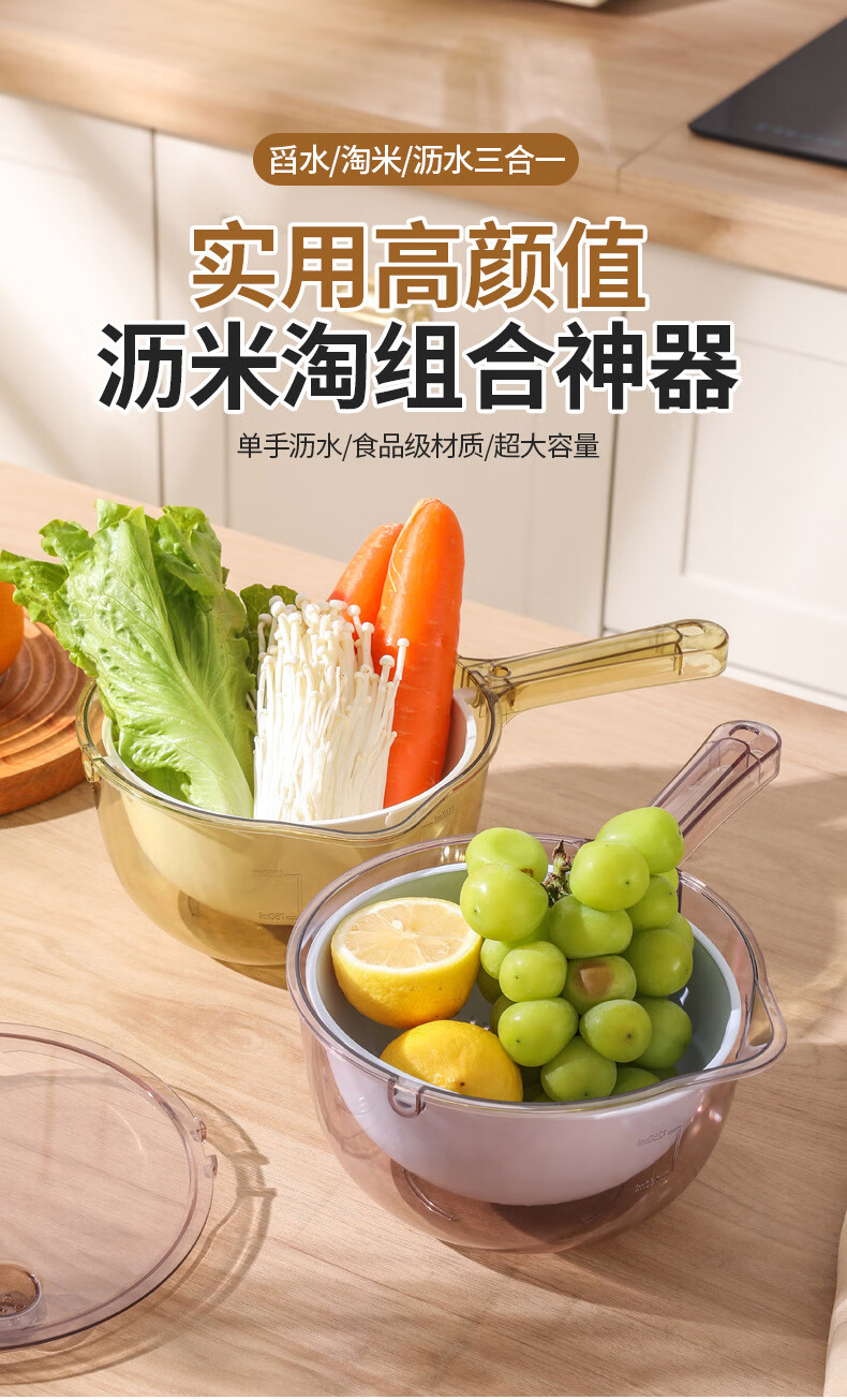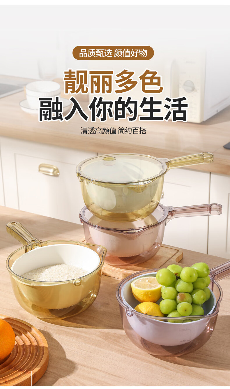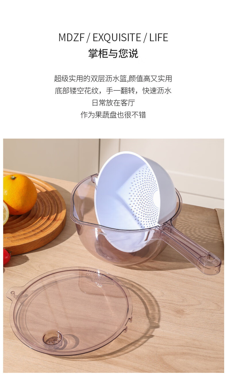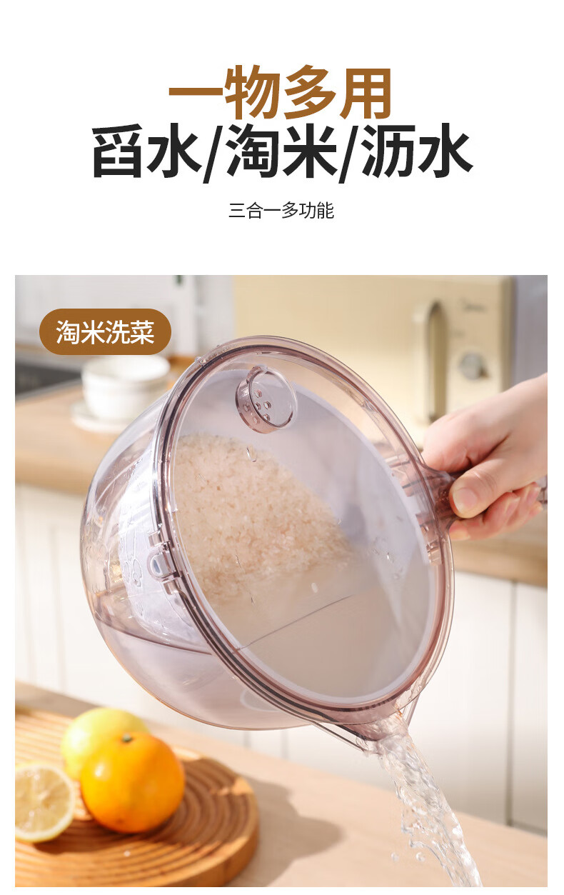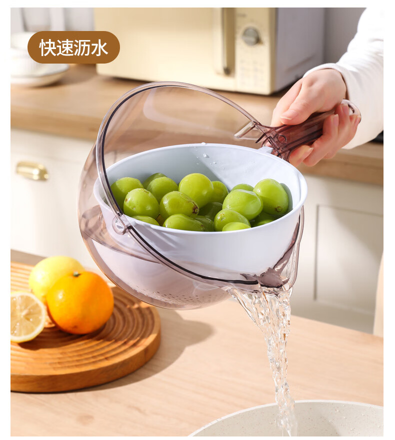 Rice basket, new kitchen multi-functional rice washing, hands-free handle, rice washing sieve, vegetable washing, fruit basin drain basket, lilac