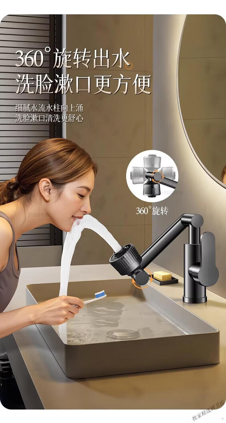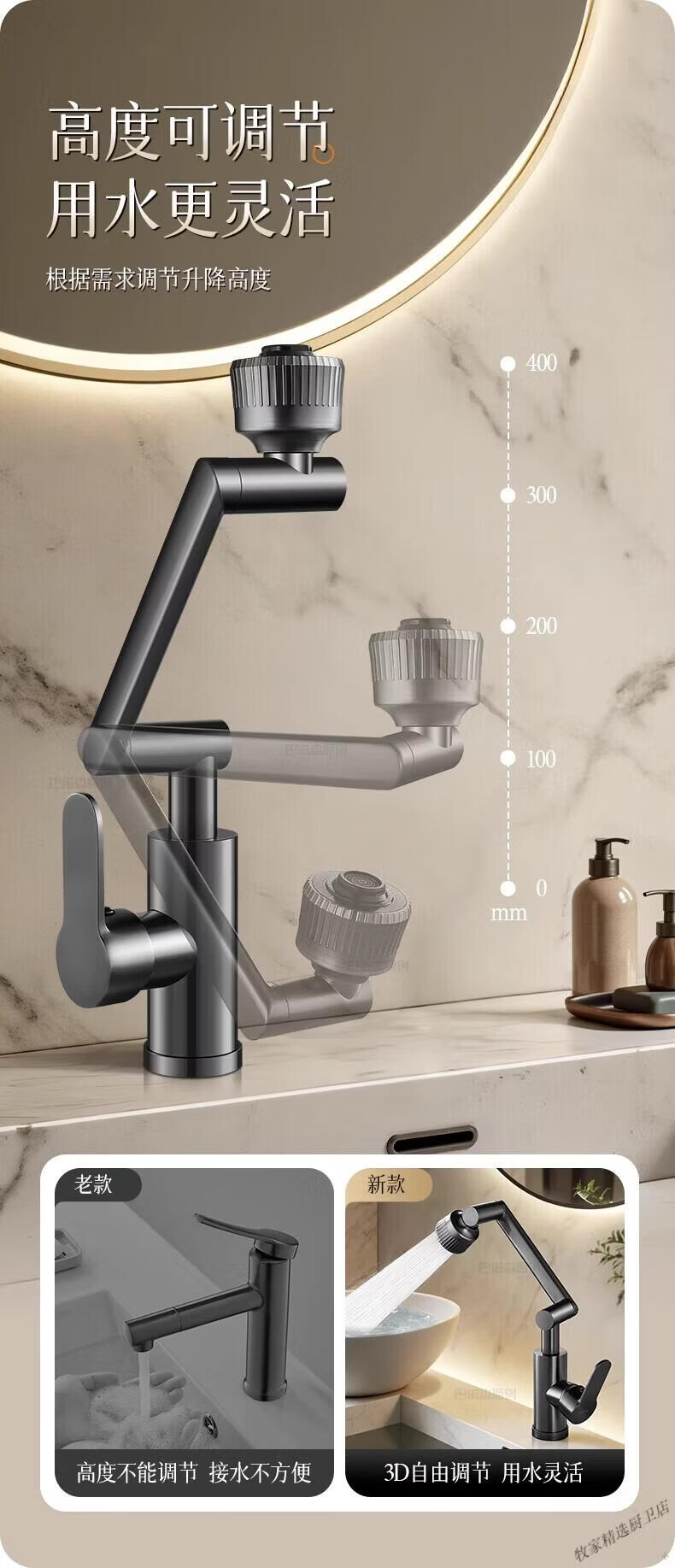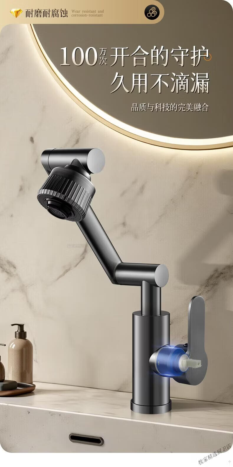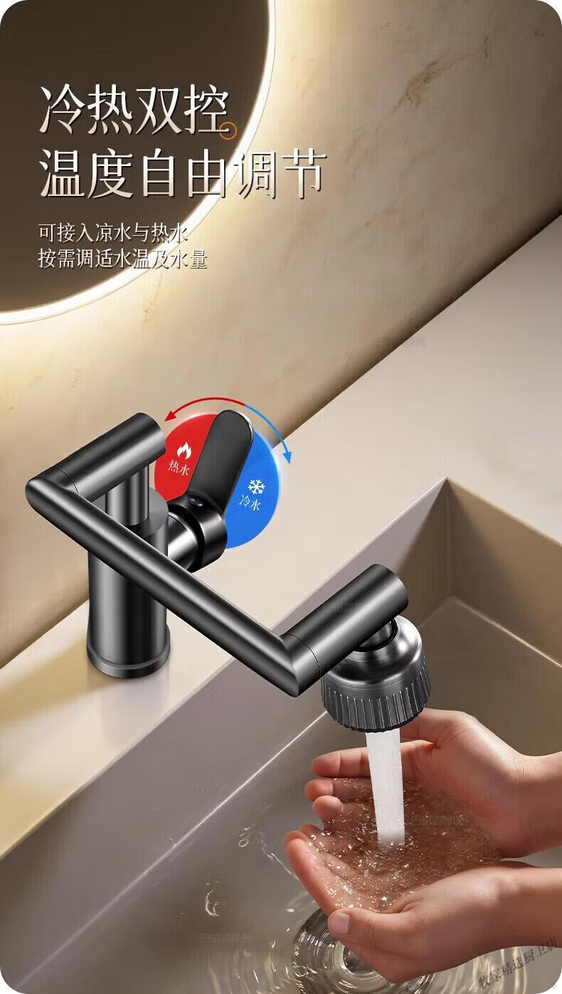 JOMOO official flagship all-copper universal mechanical arm washbasin faucet hot and cold two-in-one dual-control bathroom cabinet splash-proof Gray Cat German all-copper thickened two-speed supercharged 360-degree rotating cold