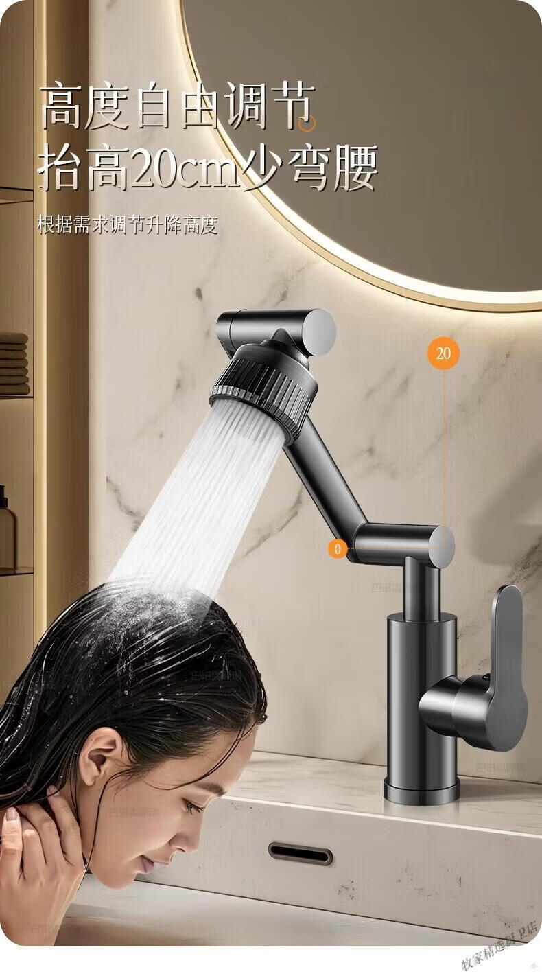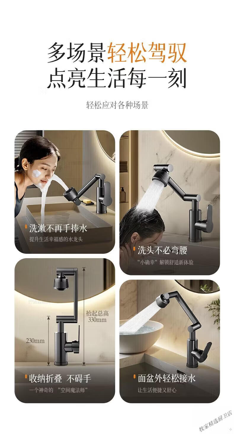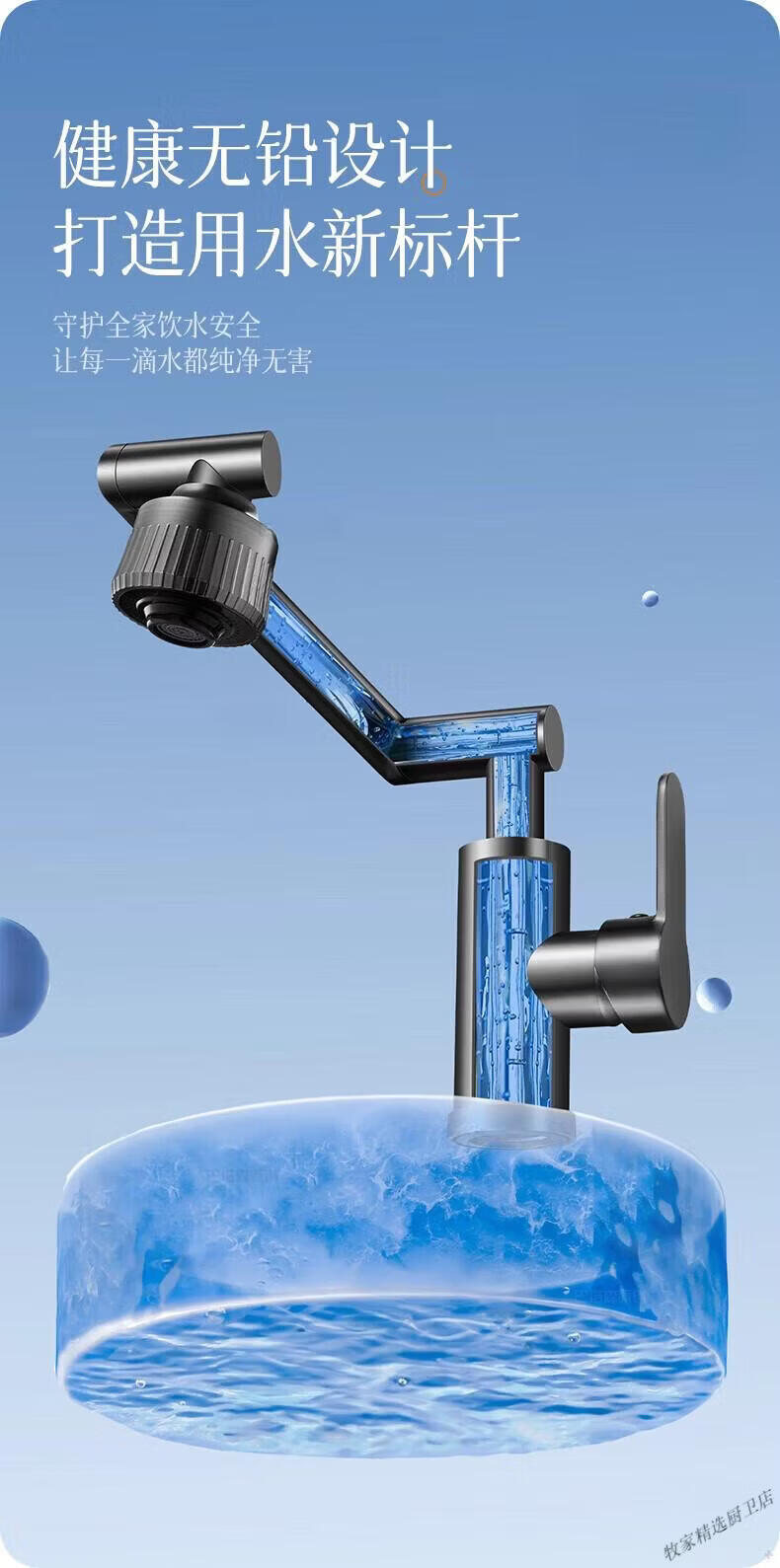 JOMOO official flagship all-copper universal mechanical arm washbasin faucet hot and cold two-in-one dual-control bathroom cabinet splash-proof Gray Cat German all-copper thickened two-speed supercharged 360-degree rotating cold