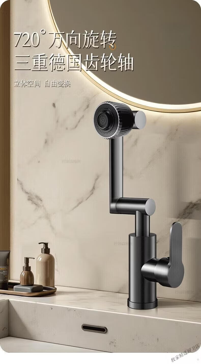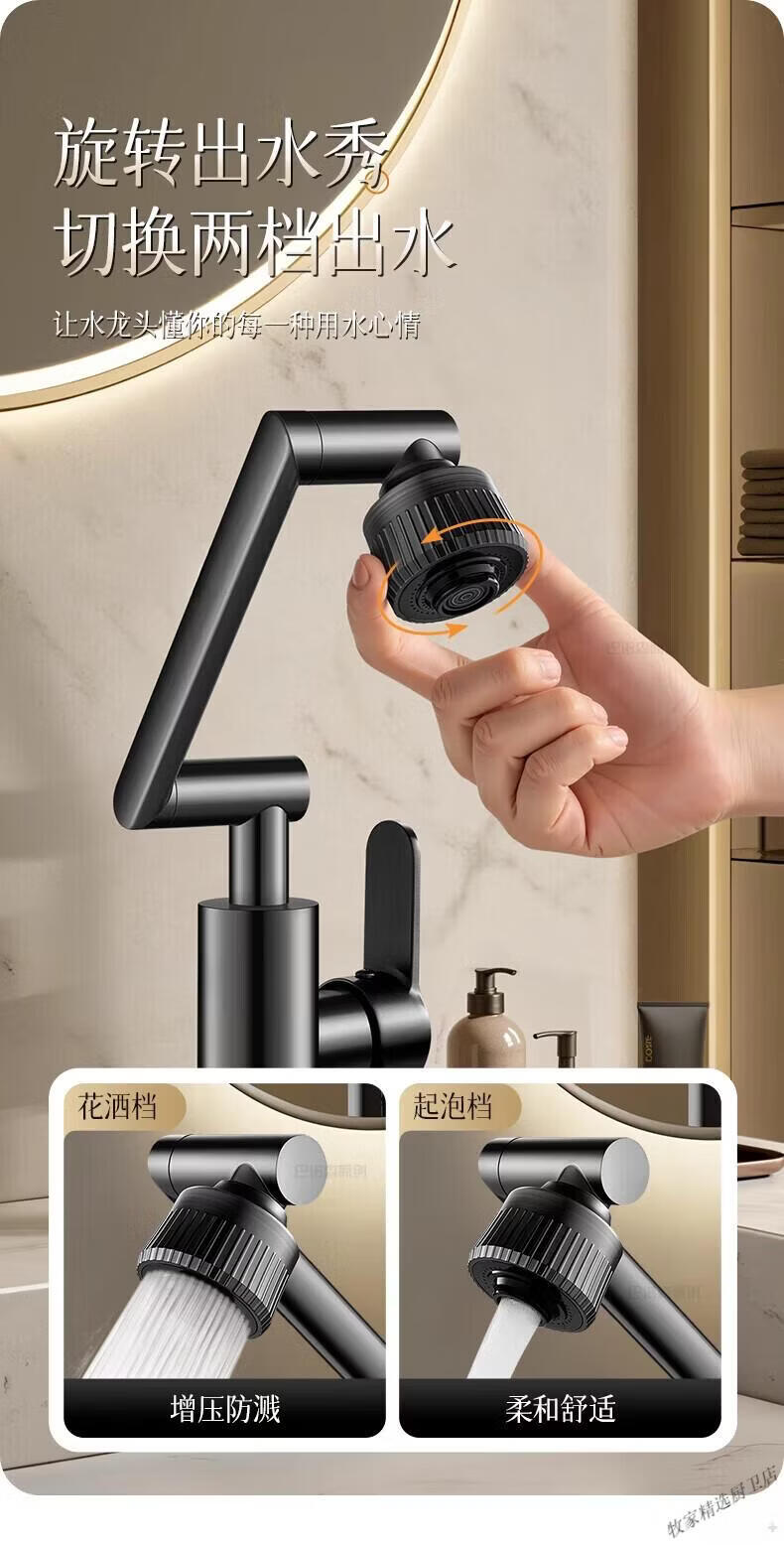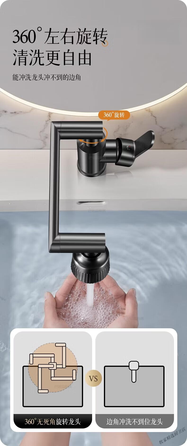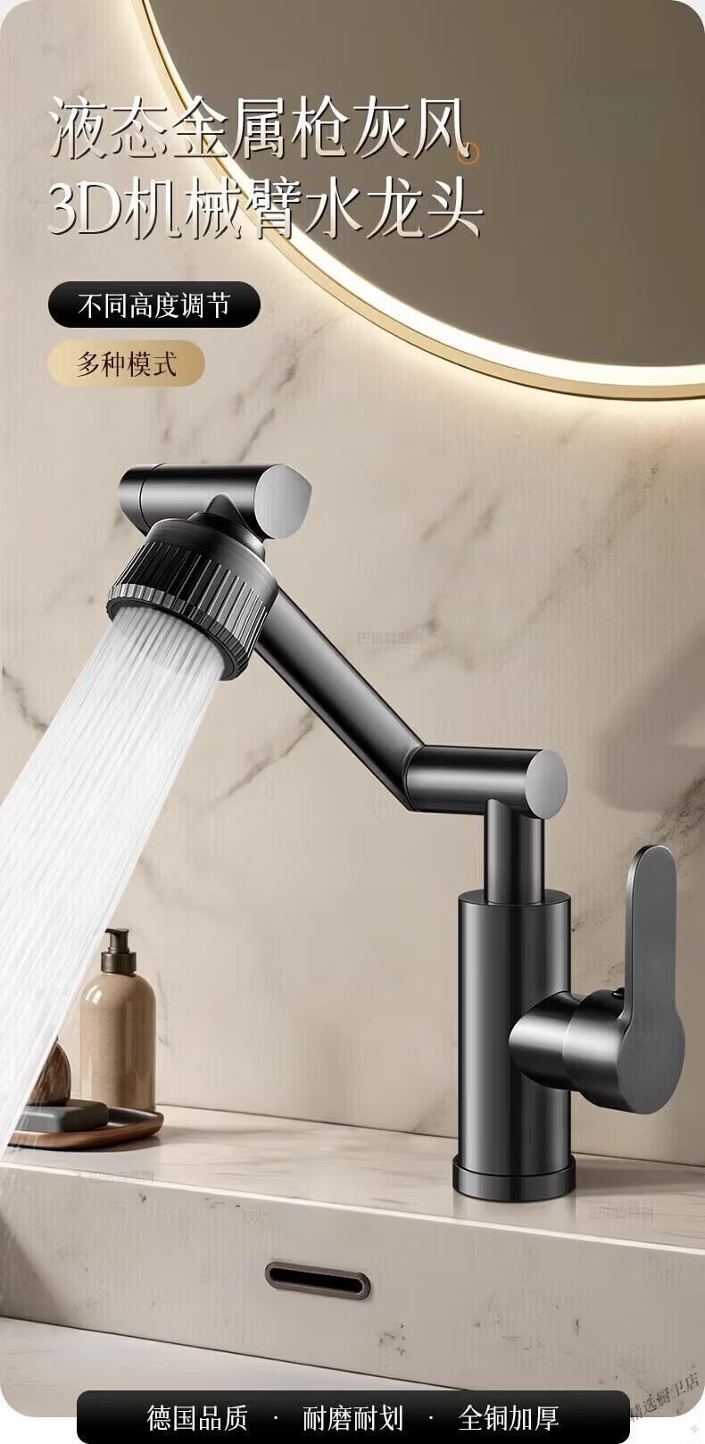 JOMOO official flagship all-copper universal mechanical arm washbasin faucet hot and cold two-in-one dual-control bathroom cabinet splash-proof Gray Cat German all-copper thickened two-speed supercharged 360-degree rotating cold