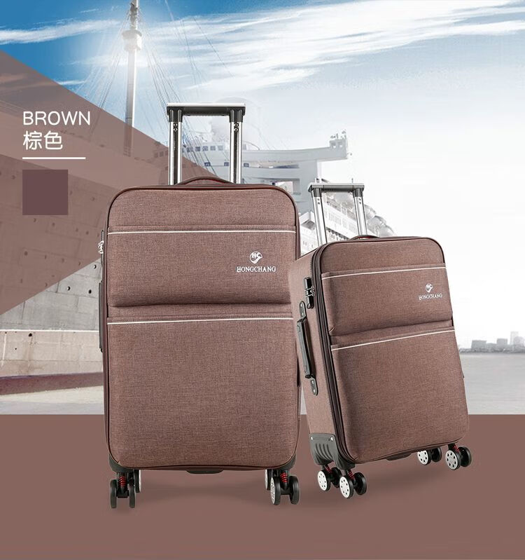 Ye Yu Oxford Pull-bar Box Wheel Suitcase Male and Female Student Trendy Waterproof Password Box Canvas Large Capacity Suitcase Brown (Shock Absorbing Wheel) 20 Inches