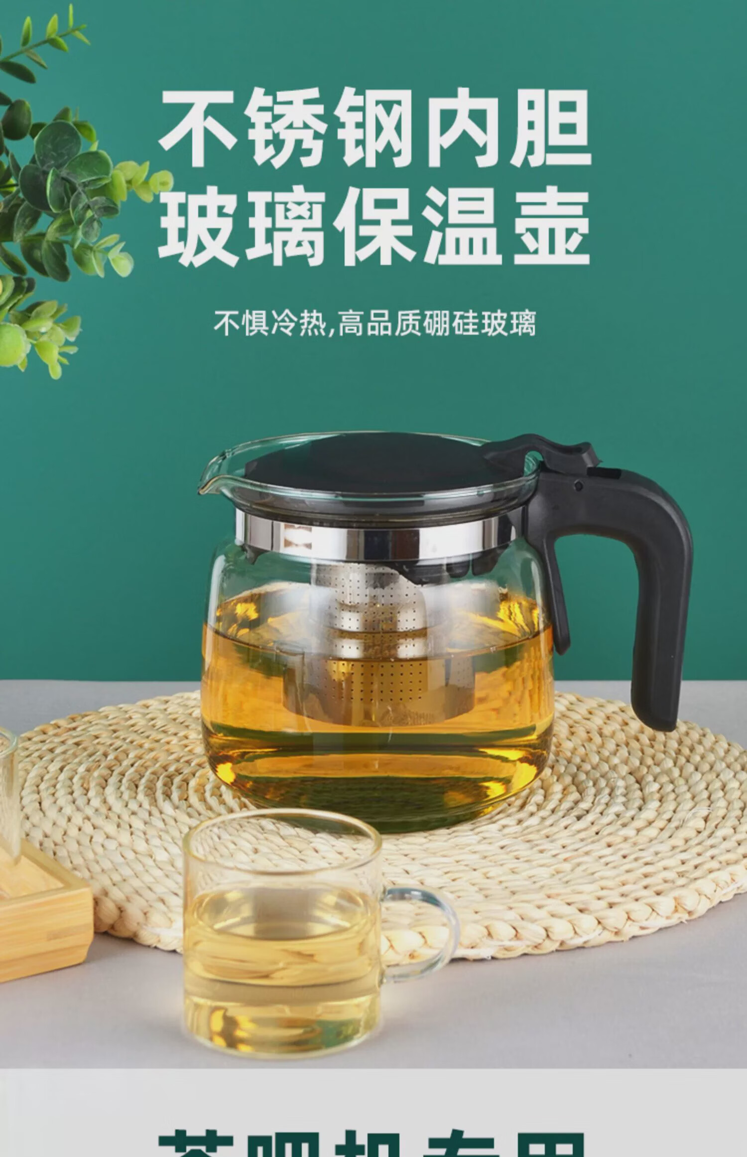 Special tea bar machine, insulated glass kettle, water dispenser, universal health kettle, tea kettle, high temperature resistance 1ml, recommended for 3-5 people, 1300 high borosilicate glass - high temperature resistance and explosion-proof