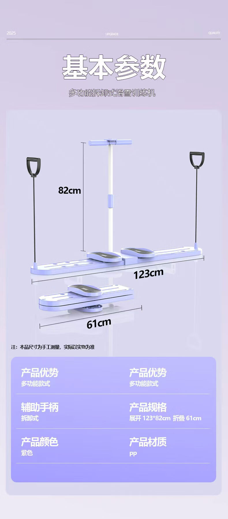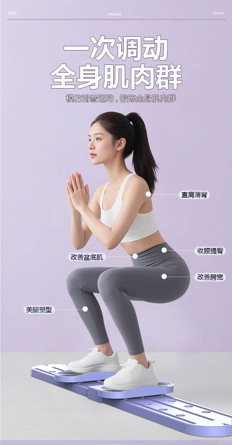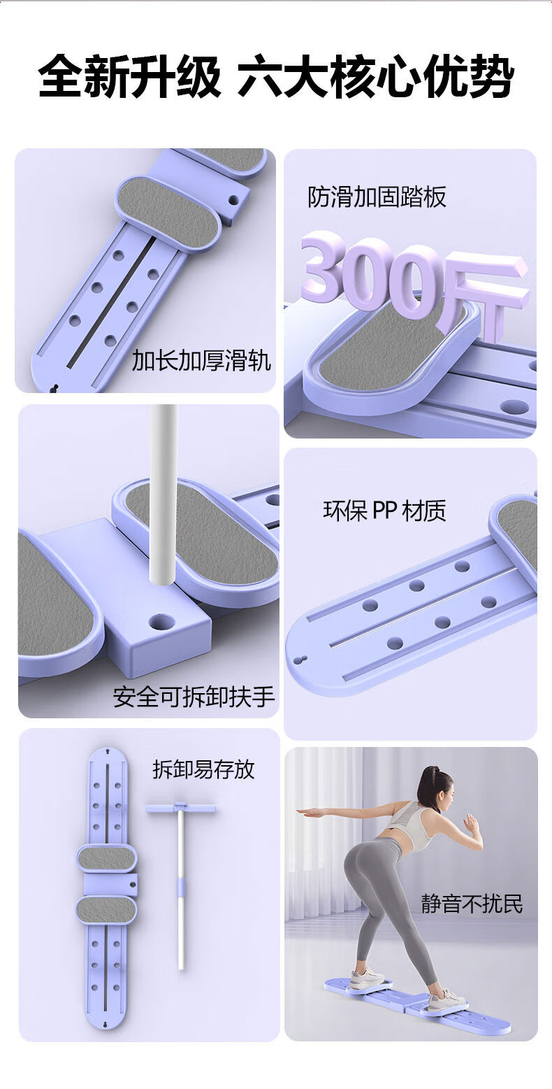 Leg ski machine for slimming thighs, home leg training machine, leg beauty machine, sliding machine, fitness equipment, beauty leg ski training machine, two-in-one with timer, purple - leg beauty machine with adjustable armrests - free foot pads