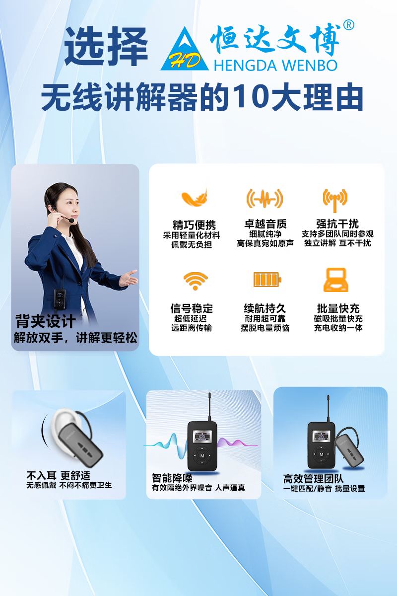 Hengda Wenbo wireless interpreter one-to-many simultaneous interpretation 1K5 transmitter + 1 wireless microphone transmitter + 50 receiver + 1 charging box