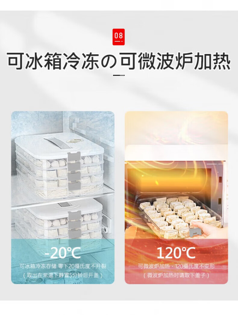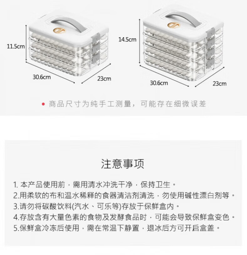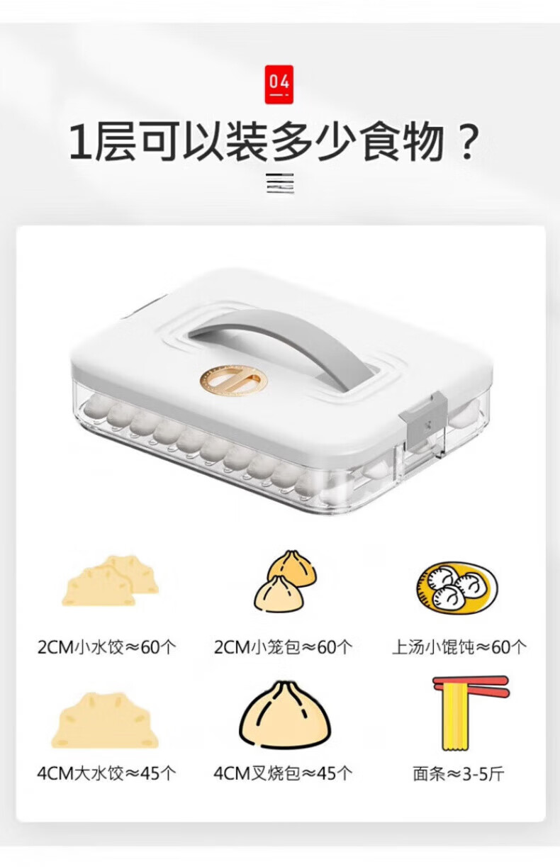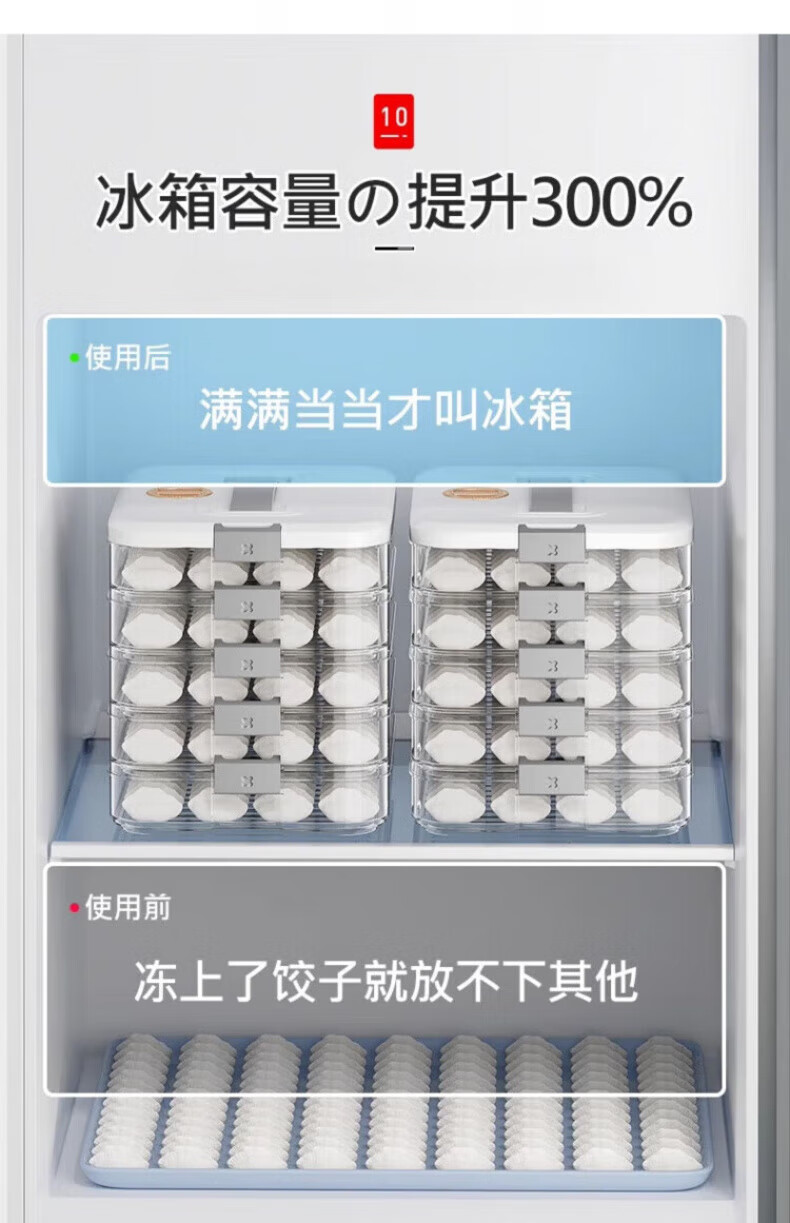 Yonghuan high-end dumpling storage box for refrigerator, food-grade frozen quick-frozen dumpling storage box, wonton special kitchen 30.6*23*14.5cm, 4 layers for 240 dumplings