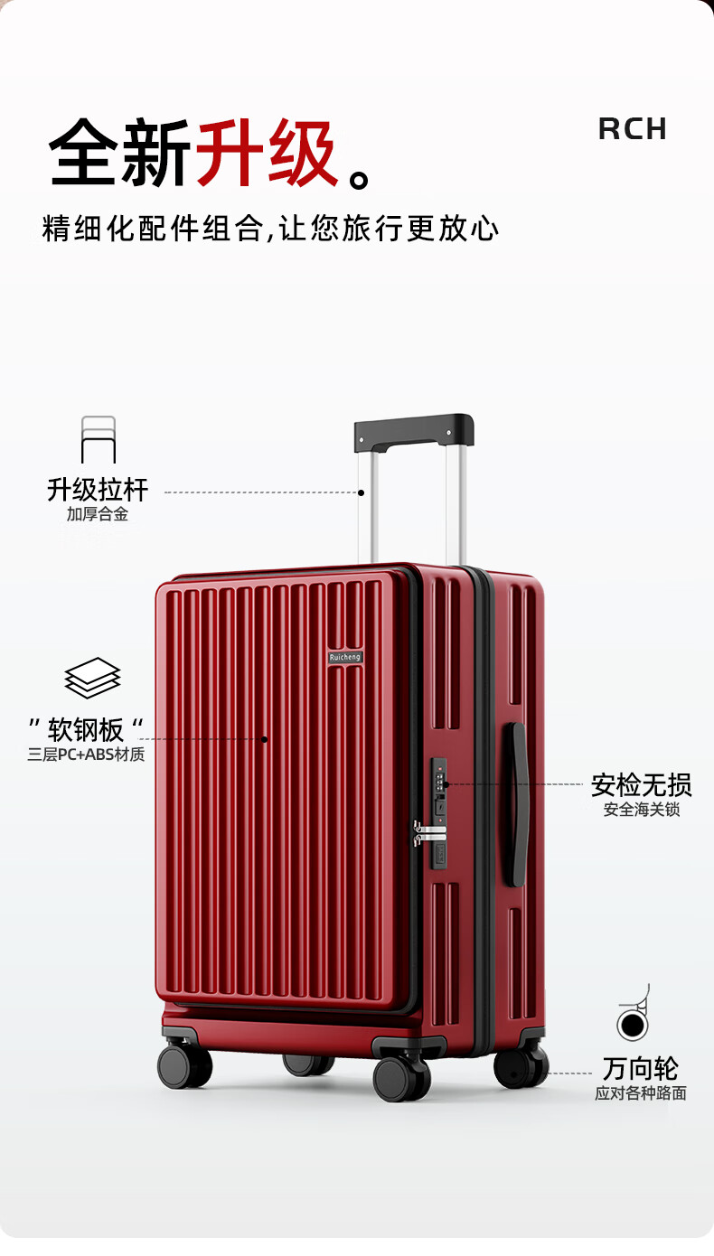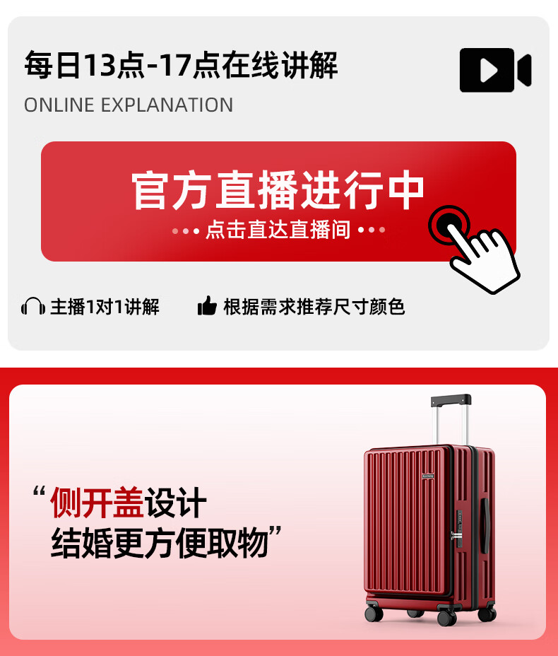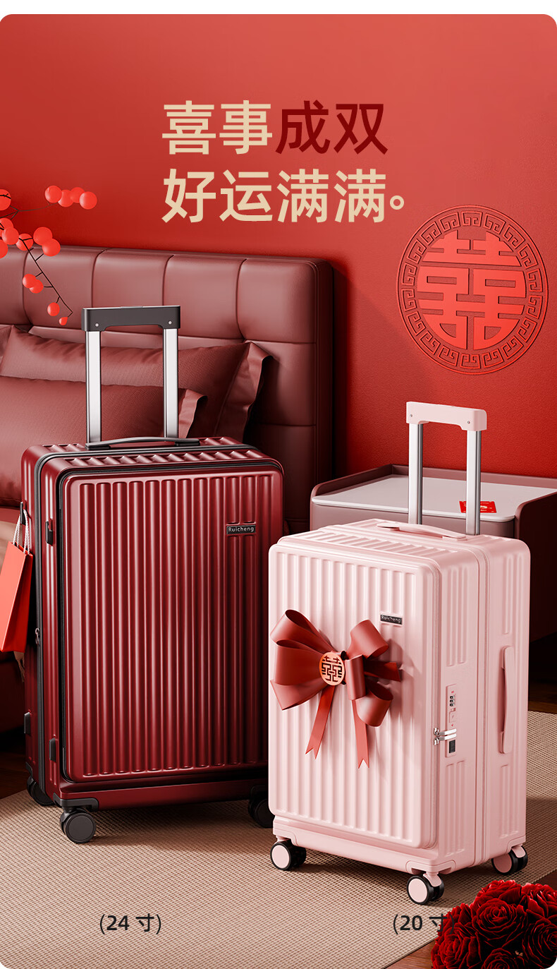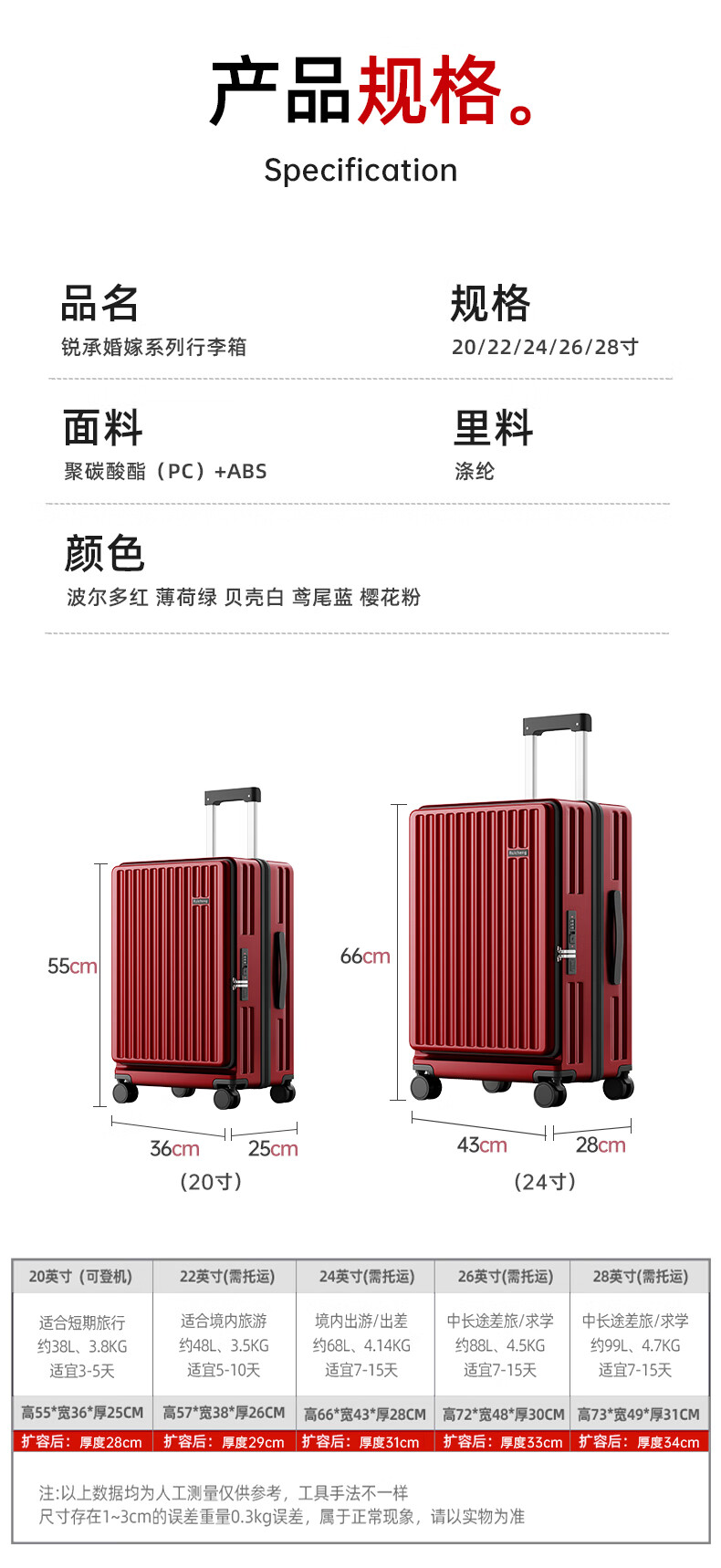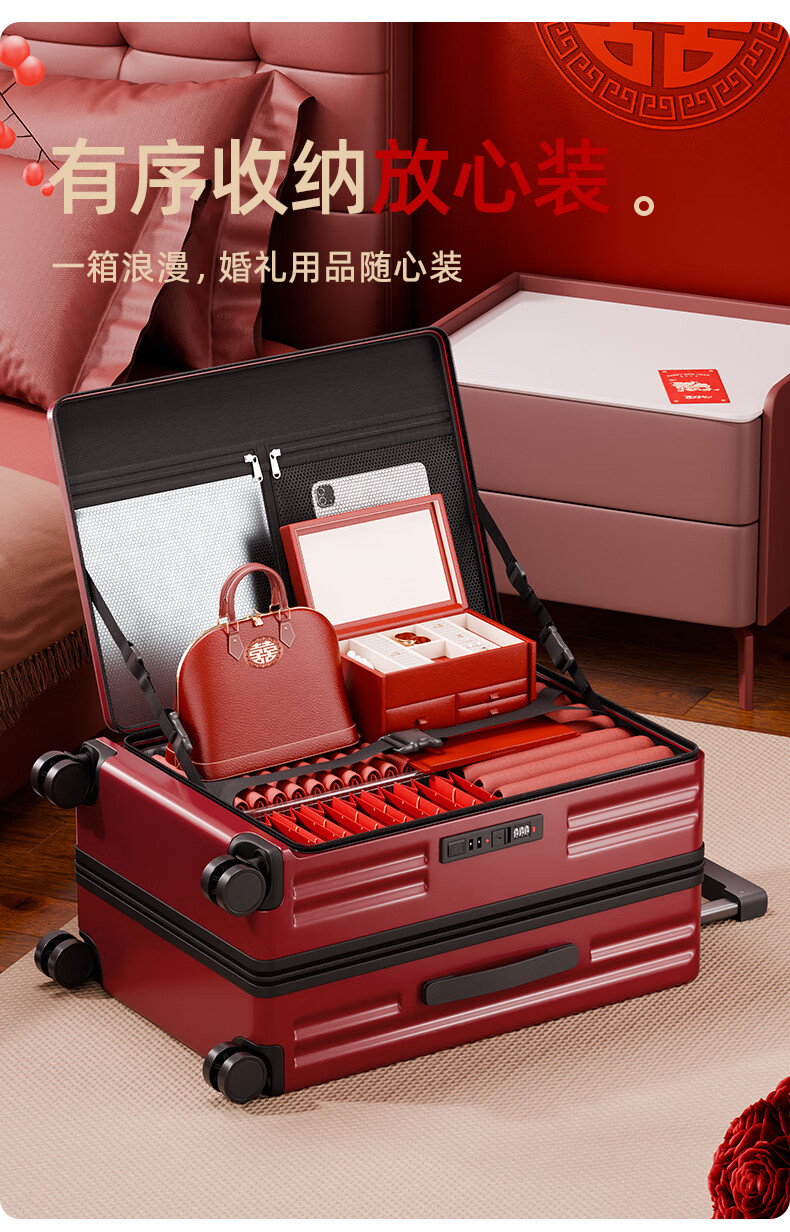 Chinese red wedding suitcase bride trousseau double layer explosion-proof zipper suitcase deep warehouse large capacity trolley case bridal red 26 inches double layer explosion-proof zipper - fully expanded large deep warehouse series