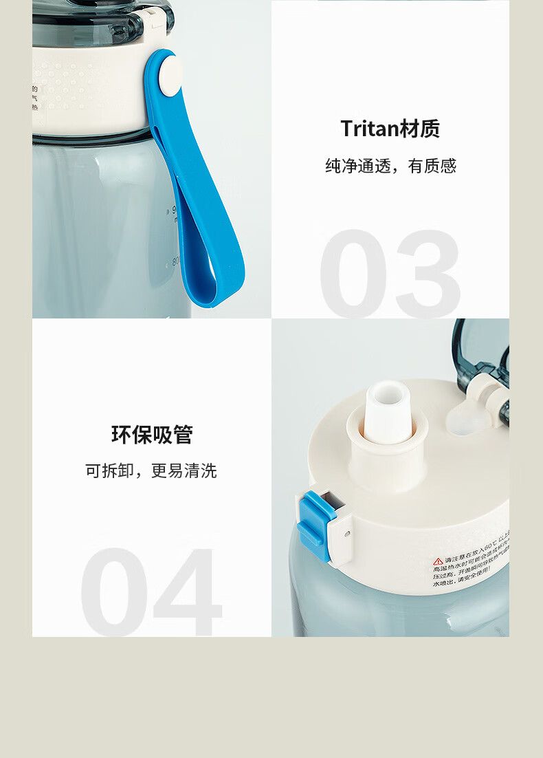 Bouncy Drinking Cup Large Capacity Water Cup Tritan Space Cup Straw Sports Water Bottle Outdoor Fitness Men Blue 1090ml