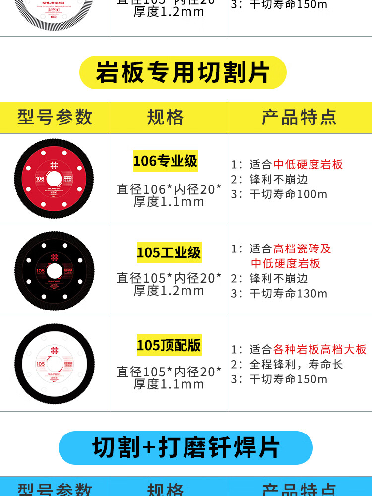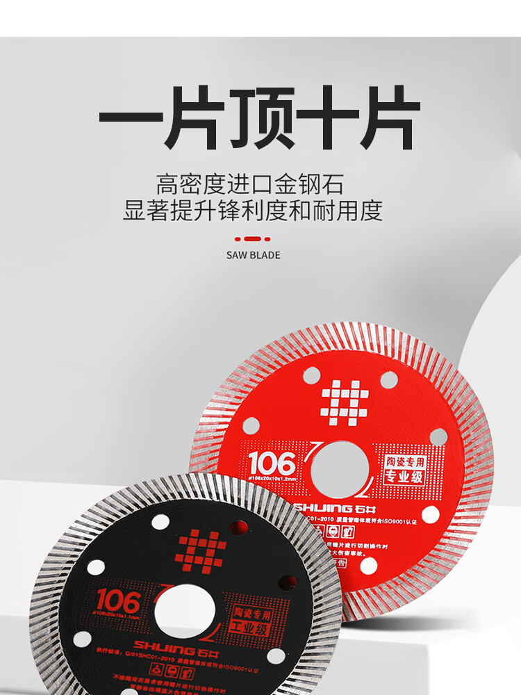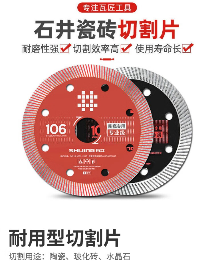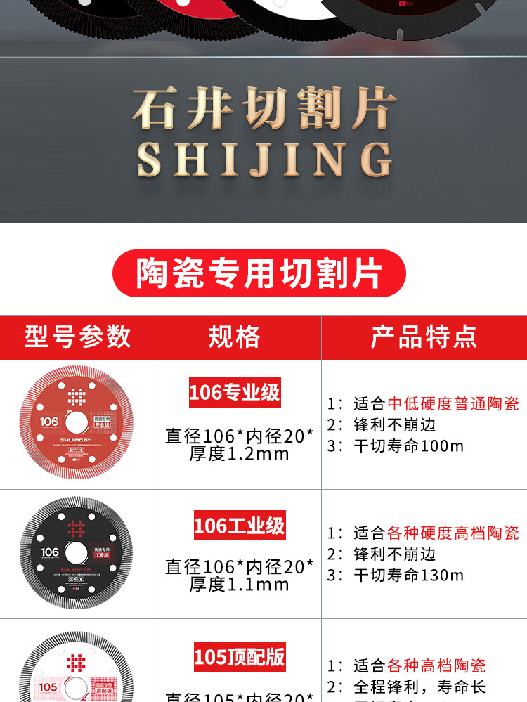 Shijing (SHIJING) ultra-thin tile cutting blade, special dry cutting water cutting marble angle grinder blade for tiles, marble blade saw blade, Shijing 106 professional grade cutting saw blade (1 piece)
