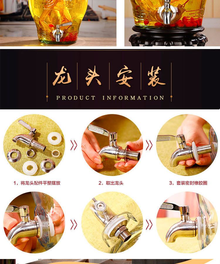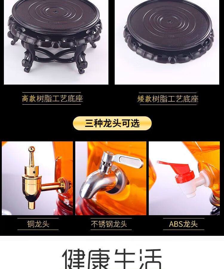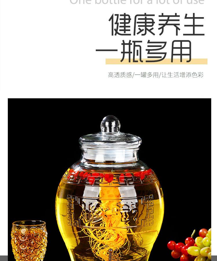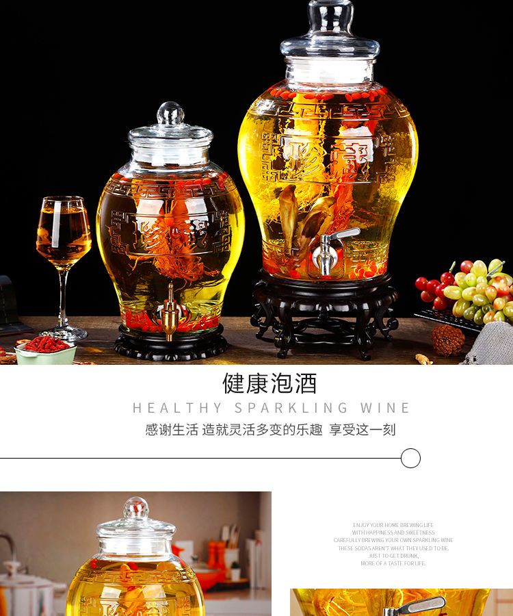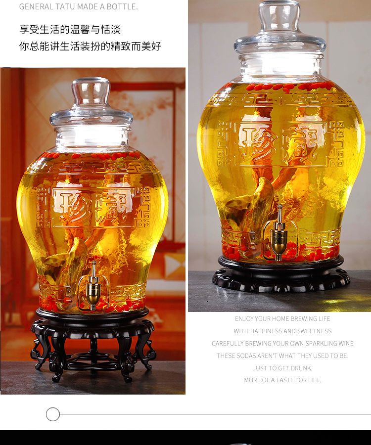 Palmerton Collection Bubble Wine Glass Bottle with Faucet 5 Jin, 10 Jin, 20 Jin Sealed Wine Jar, Bubble Wine Bottle, Wine Jar, Household Collection, 10 Jin, Water Capacity, Anti-clog Plastic Faucet