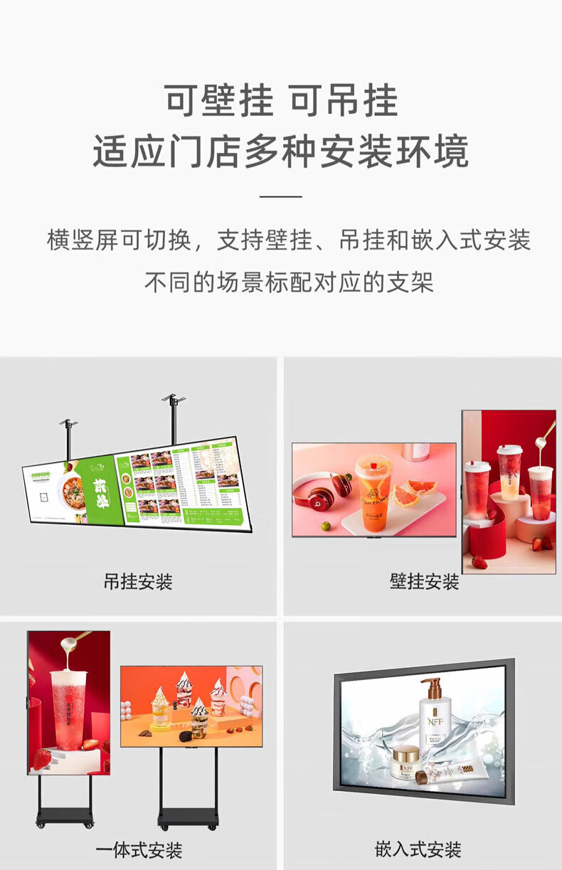 Xiaomi (MI) TV advertising machine hoisting with hanger wall-mounted TV ceiling ceiling multi-function screen projection supermarket monitoring milk tea shop burger catering hanging display signage 32 inches. Consult and send installation TV + hanging bracket + door-to-door installation