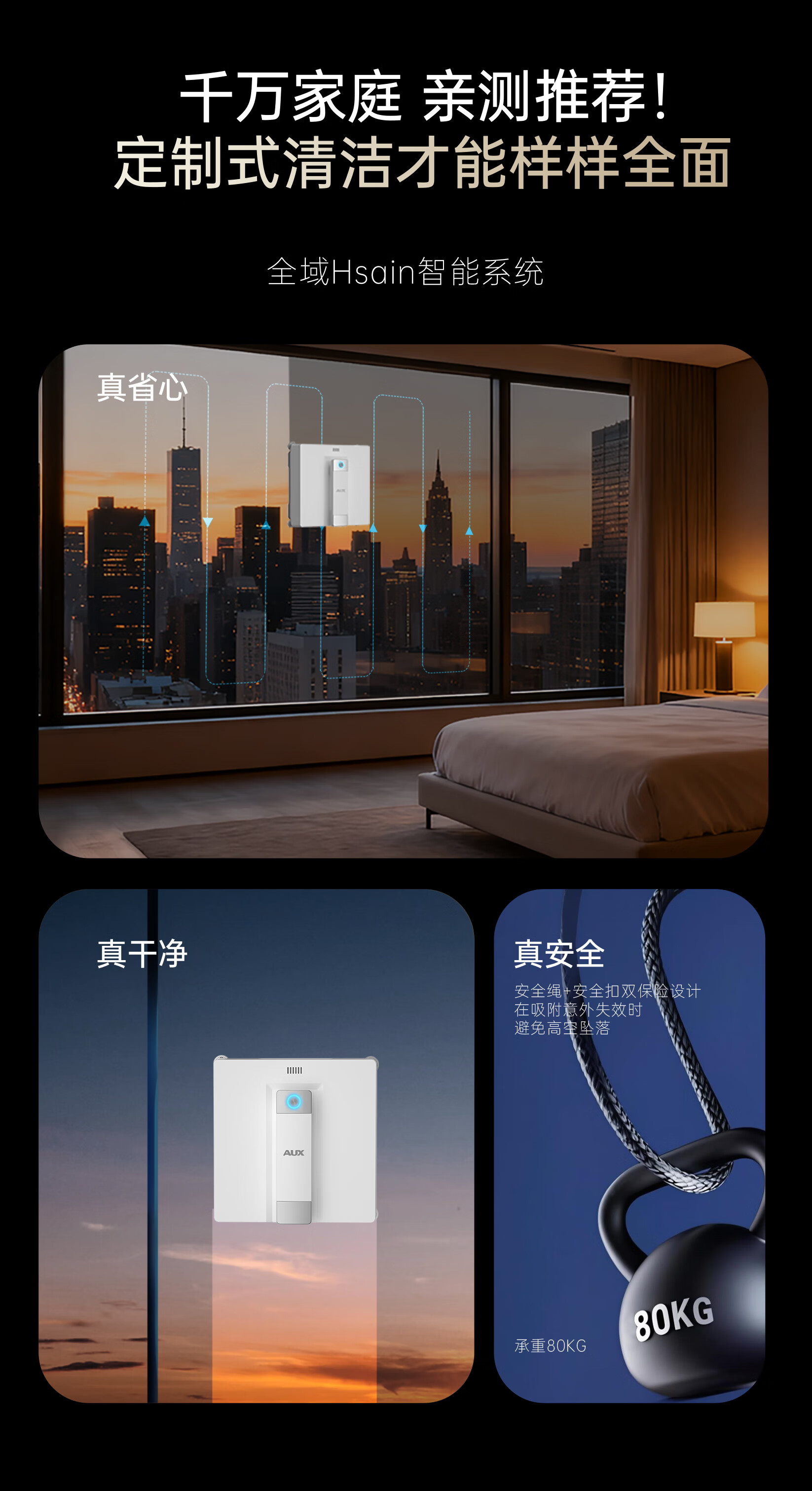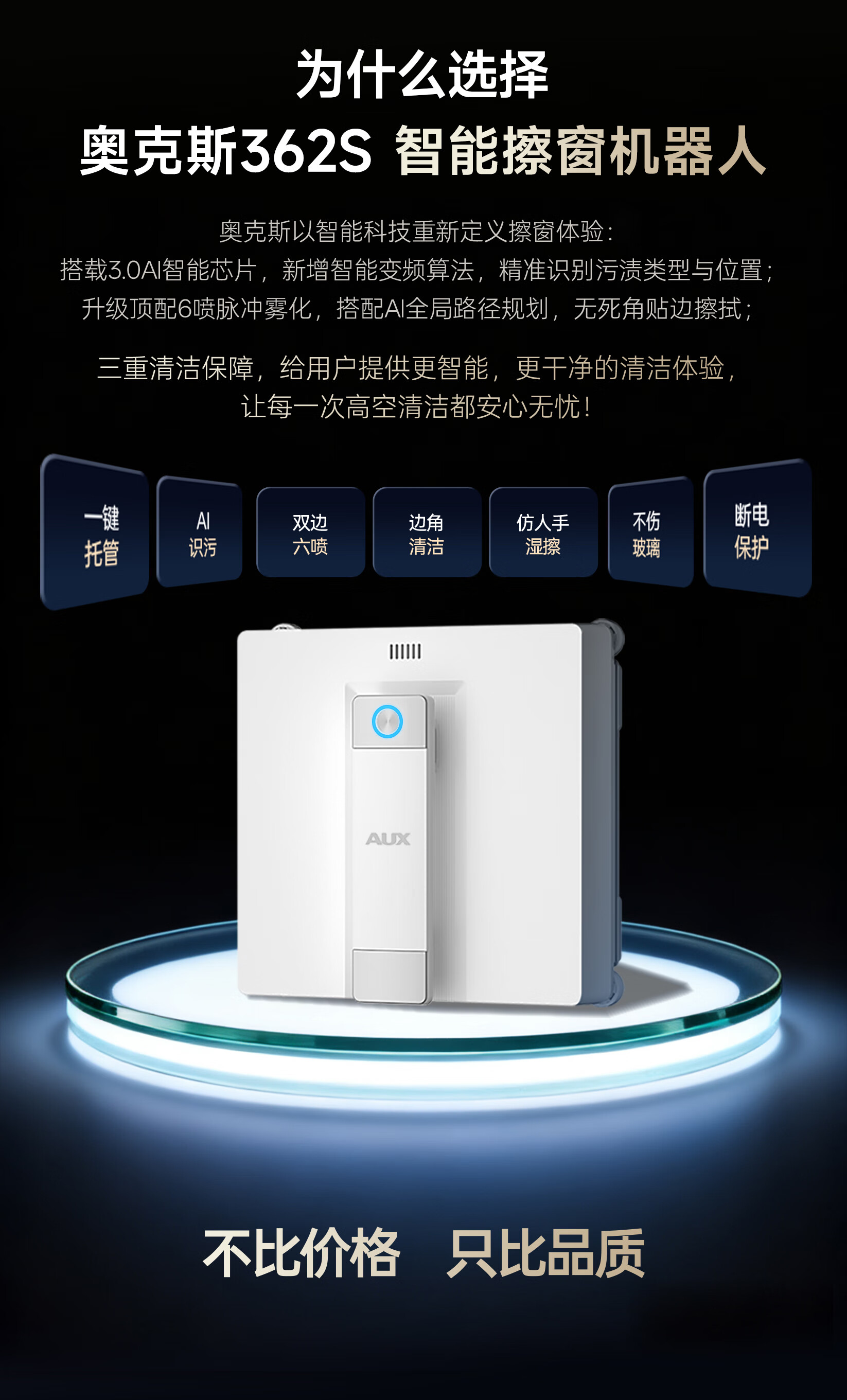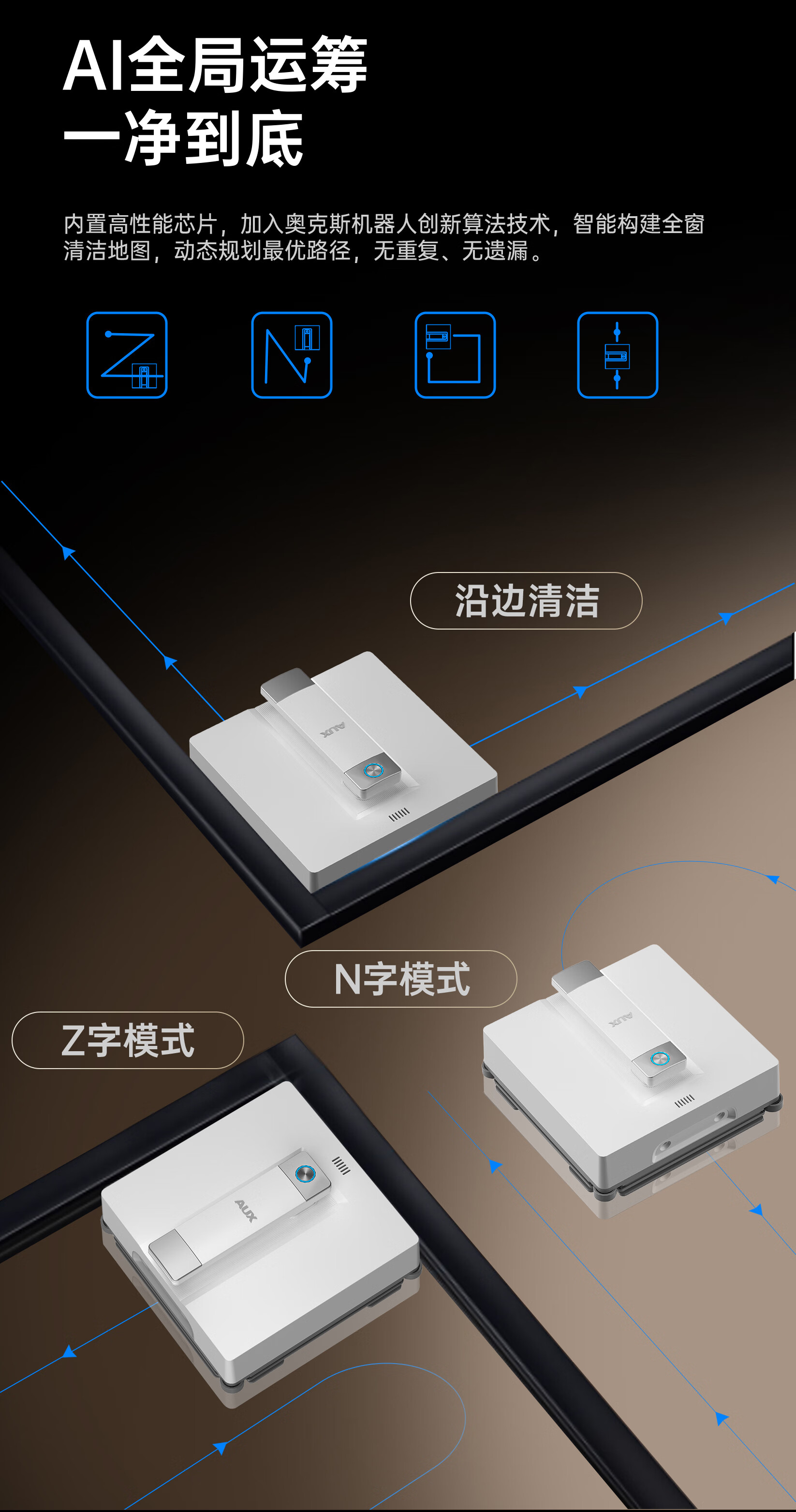 AUX Window Cleaning Robot Electric Glass Cleaning High Efficiency Fully Automatic Home Intelligent Wet Wiping and Cleaning Window Double Layer Artifact 2025 New Cleaning Machine 362S Six-Jet No Dead Angle Wet Wiping + Heavy Dirt Identification Cleaning