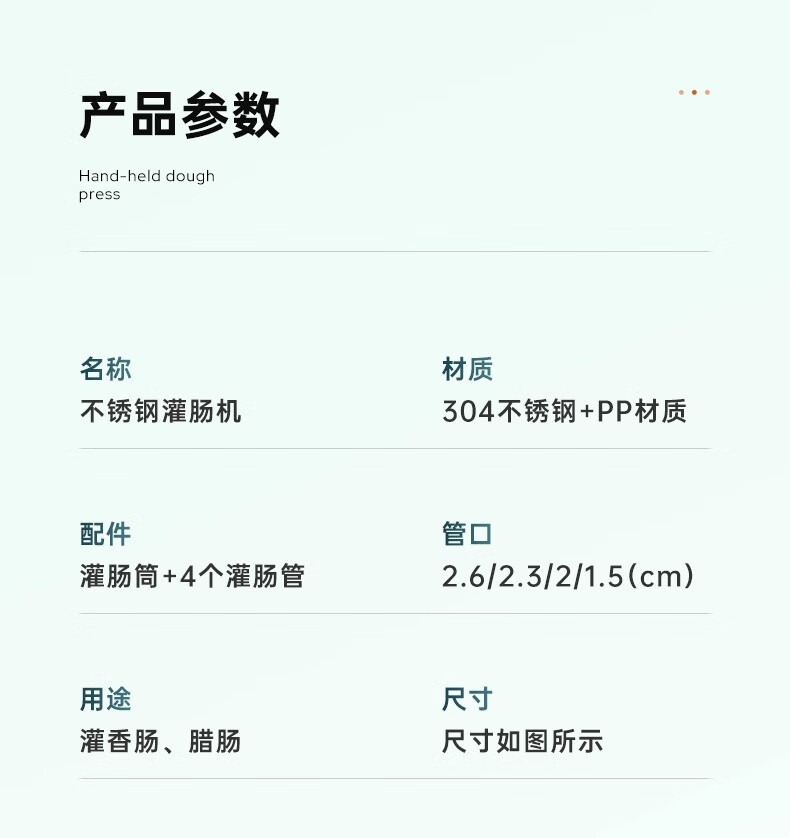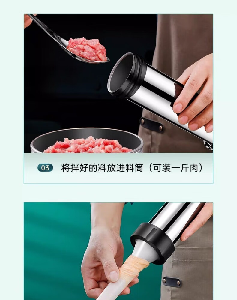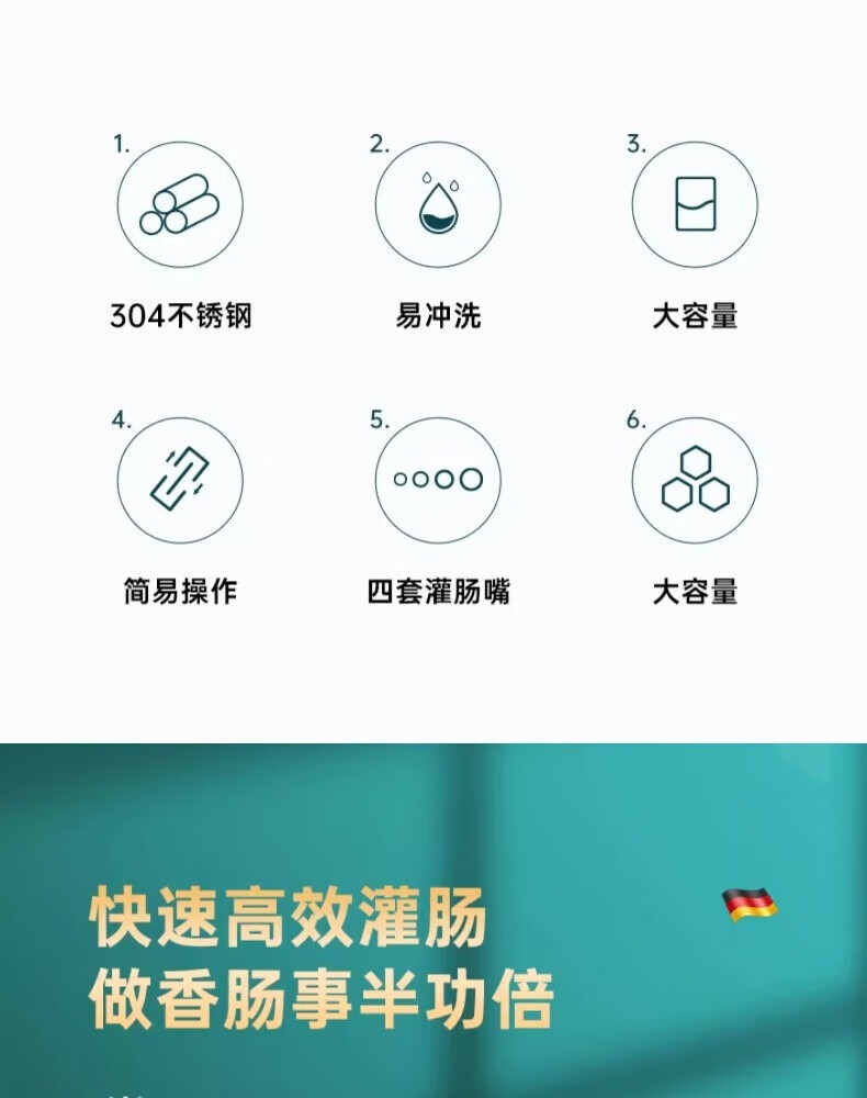 Enema machine, household sausage casing, food-grade sausage machine, manual sausage filling container, sausage making tool, stainless steel model, free 4 enema tubes