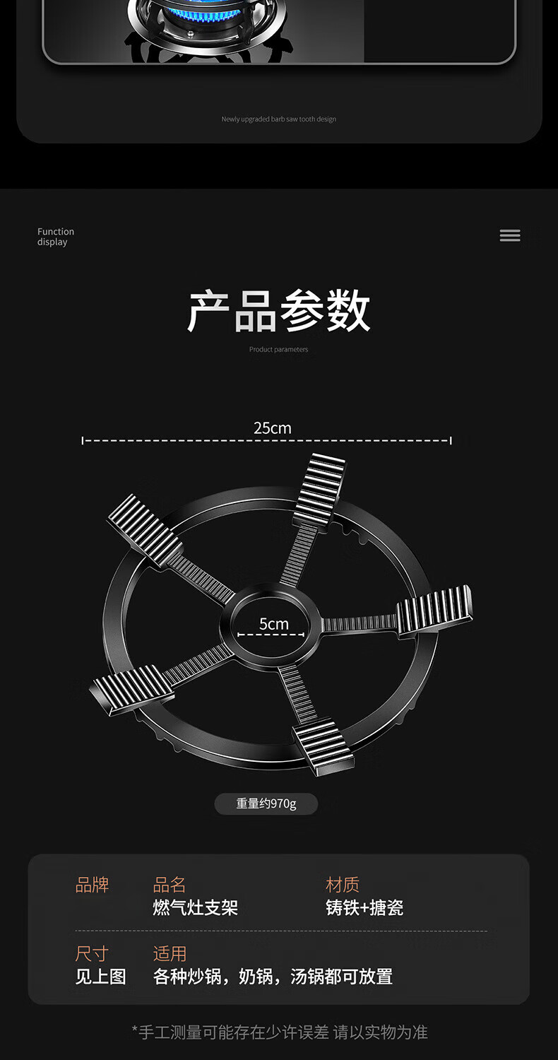 Thickened and elevated bracket accessories, cast iron windshield, anti-slip milk pot bracket, flame hood, gas stove hood, pots and pans, cast iron heart-shaped anti-slip rack