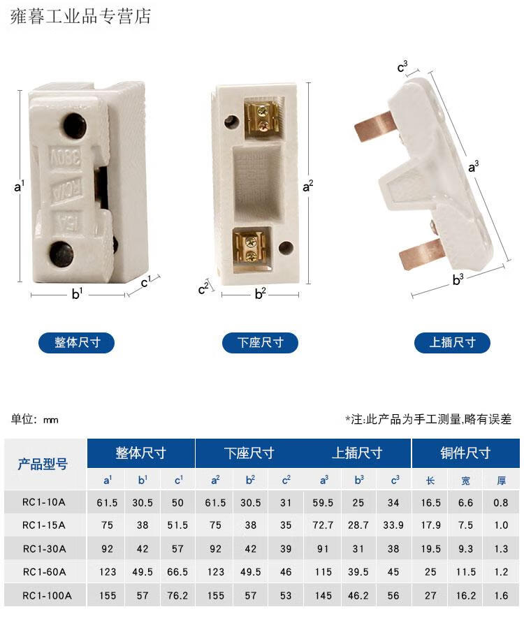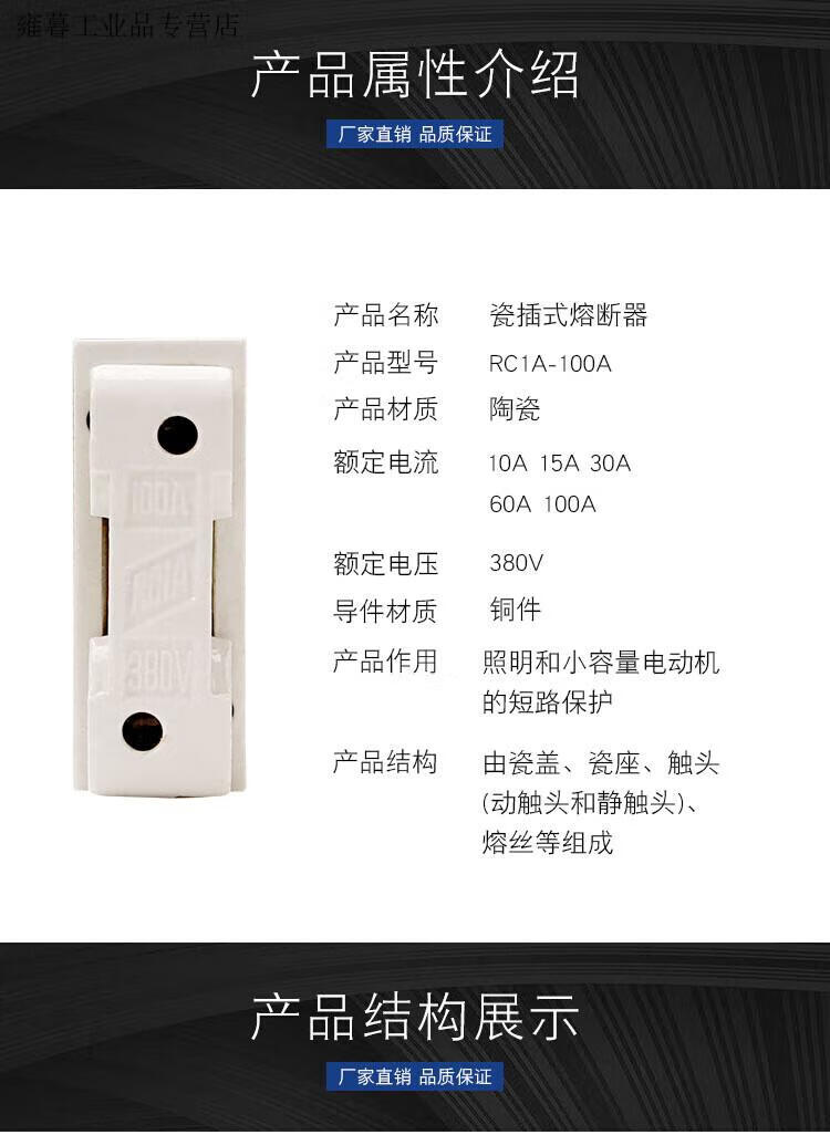 Suitable for ceramic plug-in fuse box RC1A-10A 15A 0A 60A100A 200A magnetic plug-in fuse 60 60A upper plug + lower base