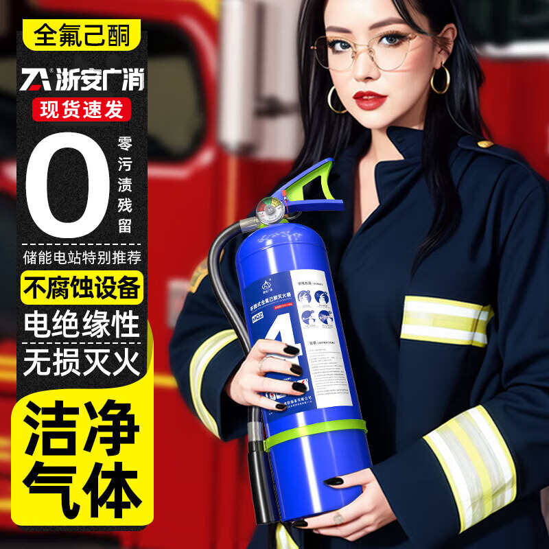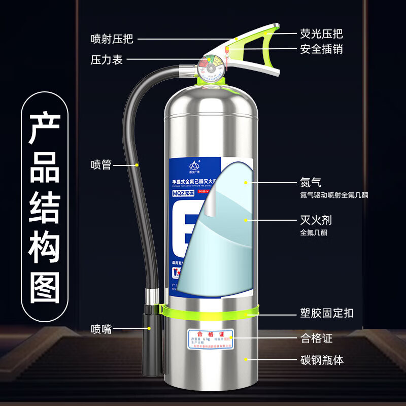 Zhe'an Guangxiao perfluorohexanone fire extinguisher high-end car-mounted portable suspended heptafluoropropane stainless steel non-magnetic fire extinguishing device clean gas machine room firefighting 1kg portable perfluorohexanone fire extinguisher stainless steel