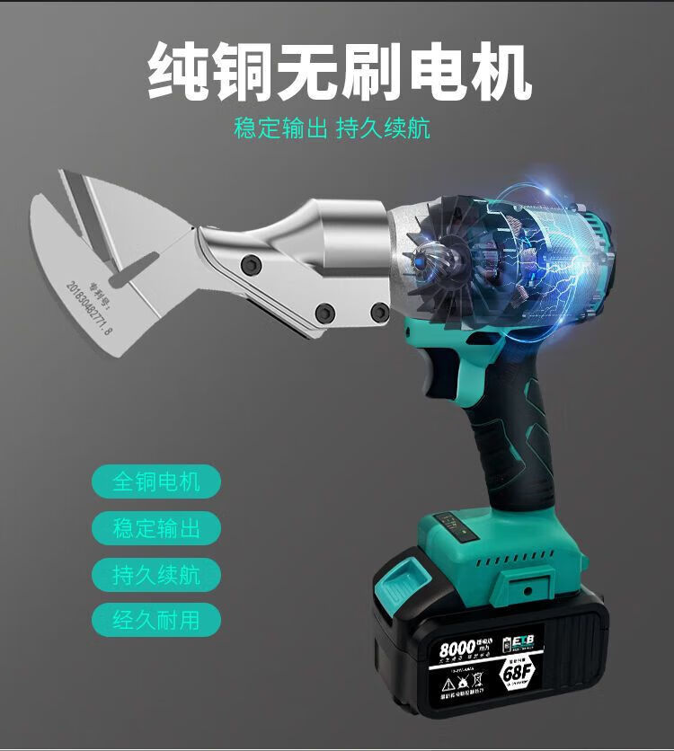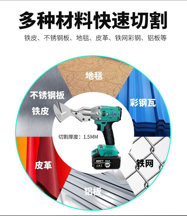 Vinoa industrial grade lithium battery stainless steel plate electric iron scissors industrial color steel tile diamond mesh handheld rechargeable scissors. Motor pictures will be sent with a battery. Brush motor. Direct cutting knife head 288VF1 electric.