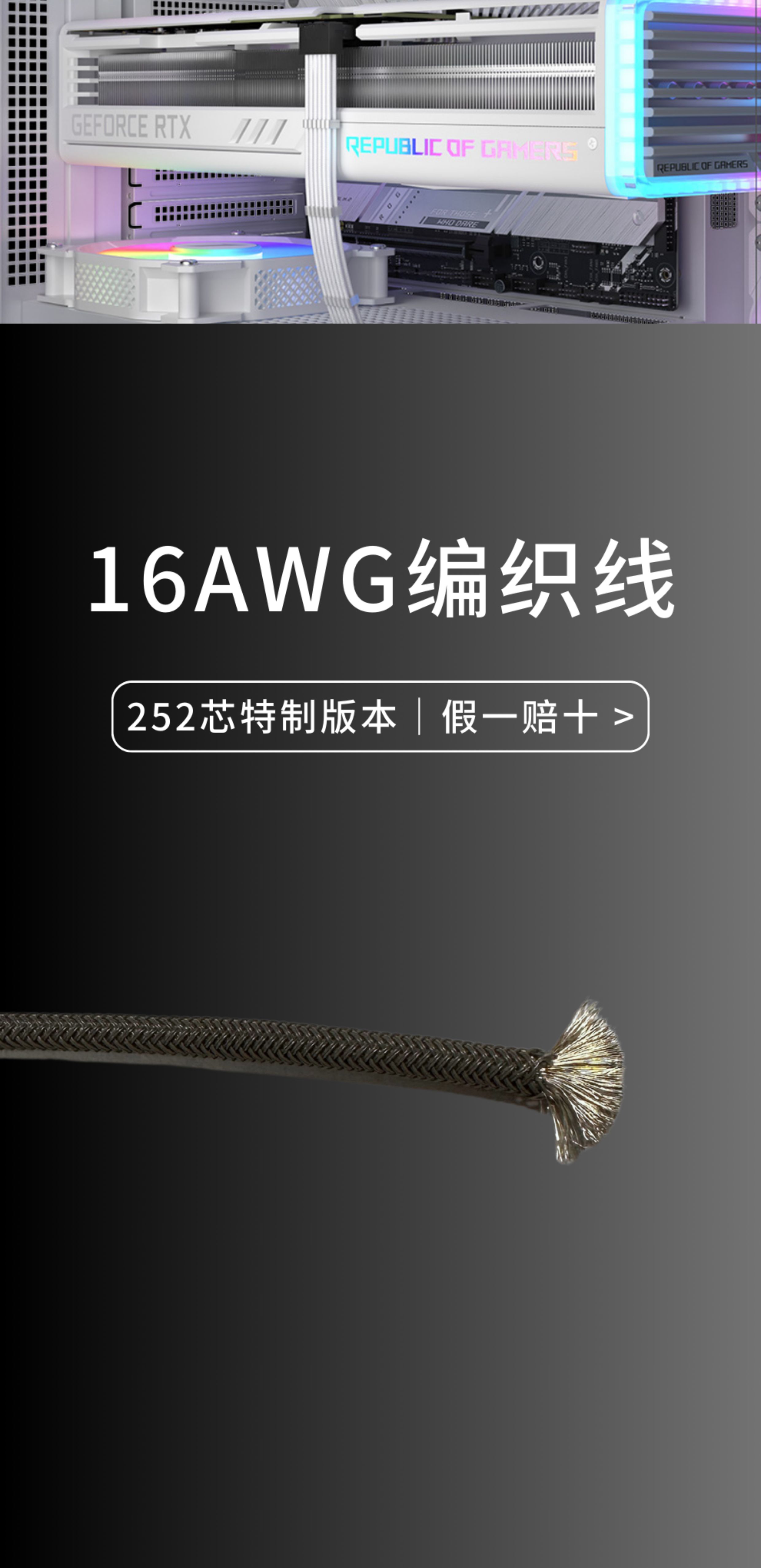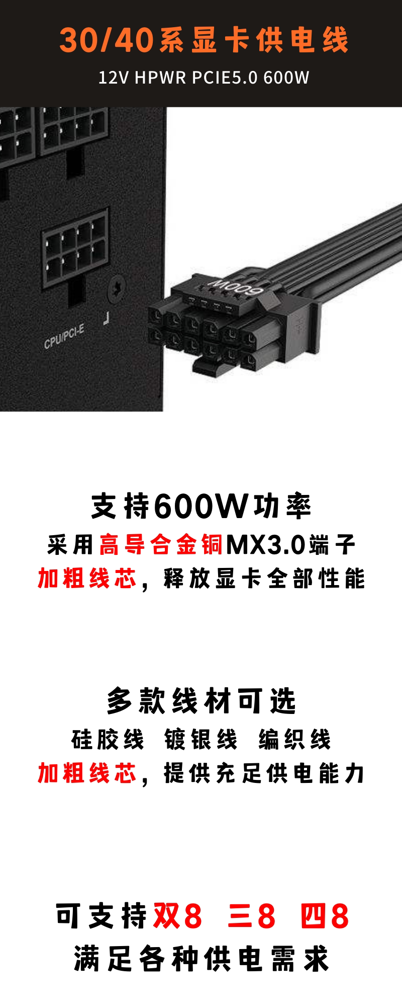 16Pin high-standard silver-plated graphics card power supply module cable, supports PCIE5.0 adapter and ARGB lighting custom cable, thick 16AWG braided cable - motherboard + CPU + graphics card