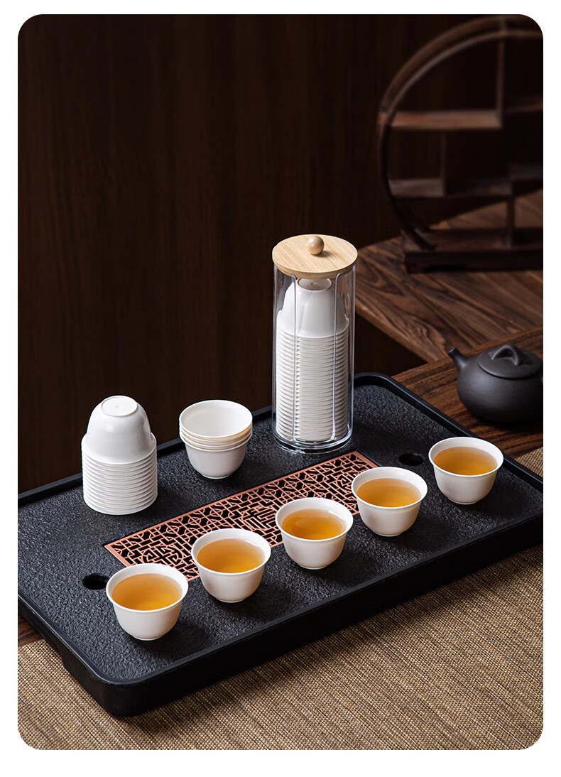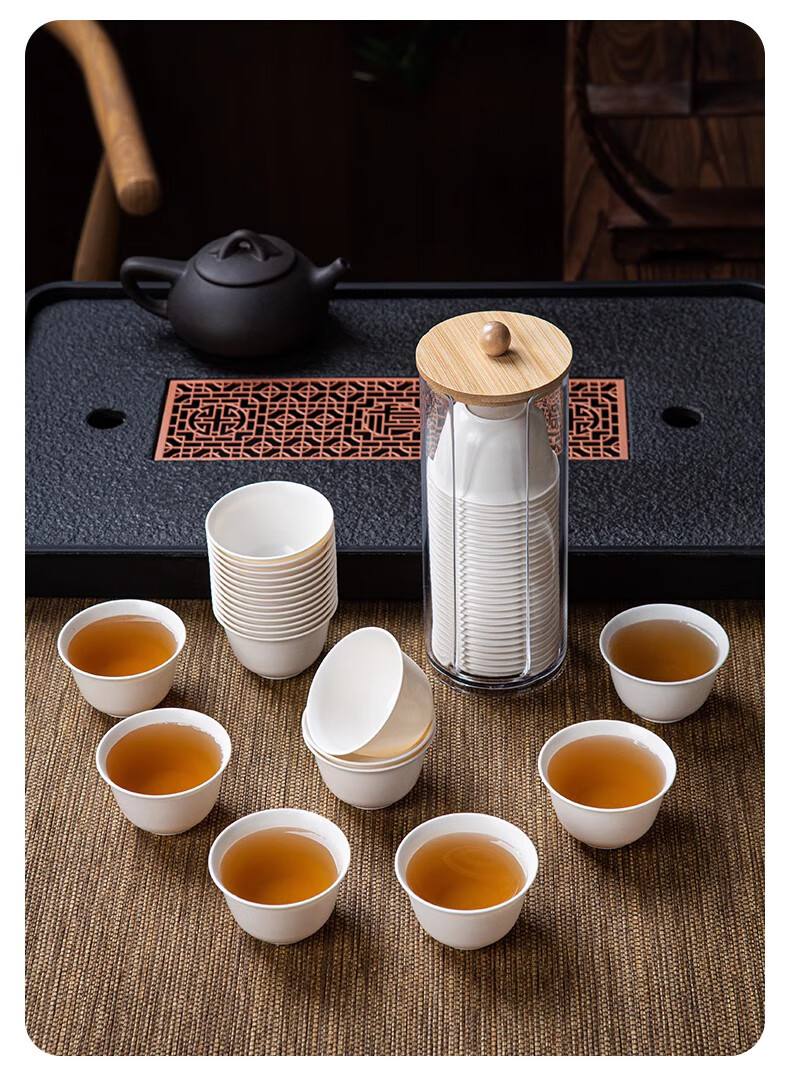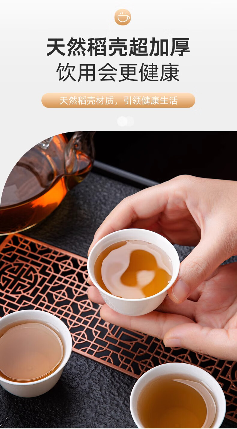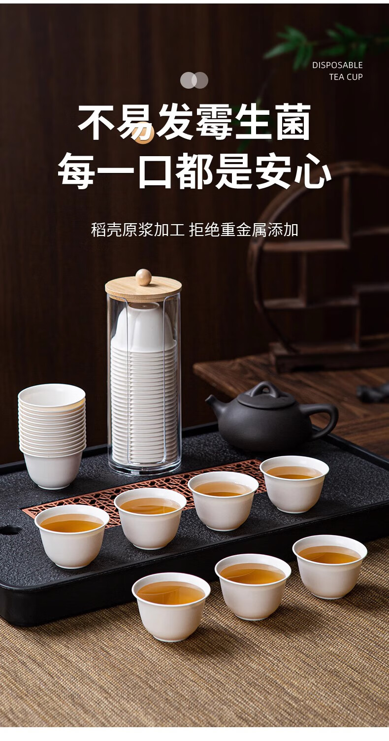 DEATKN German disposable tea cup, rice husk Kung Fu tea cup, thickened small cup, household outdoor tea drinking portable tea set, Daoxiang cup 4 bags, 200 pieces, 60ml, free dustproof cup holder