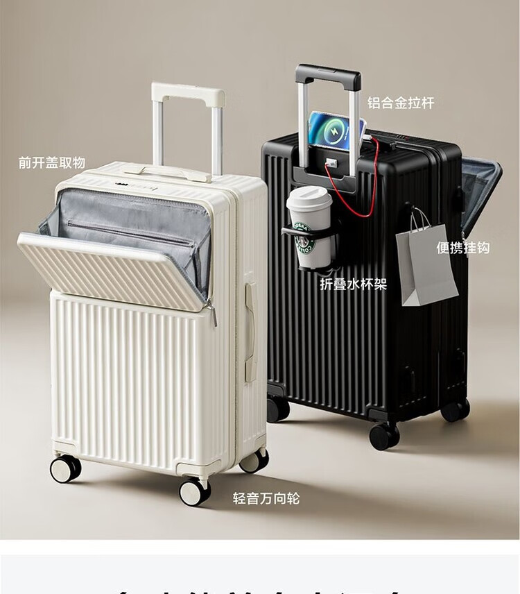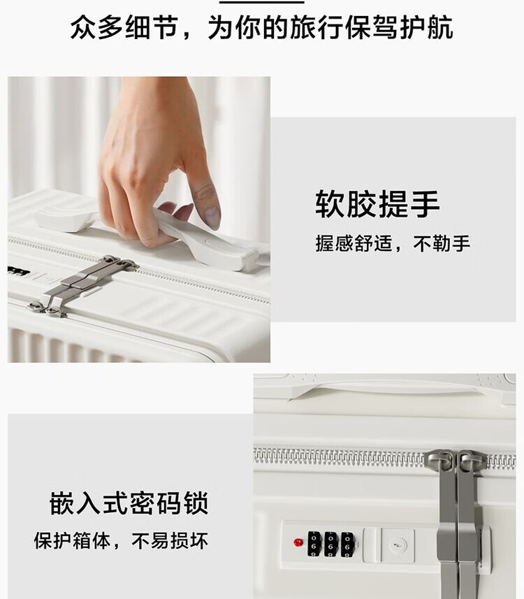 Xiaomi Youpin front opening suitcase large capacity student trolley case multifunctional new password box universal wheel strong Mipin front opening top version milk white 20 inches front opening
